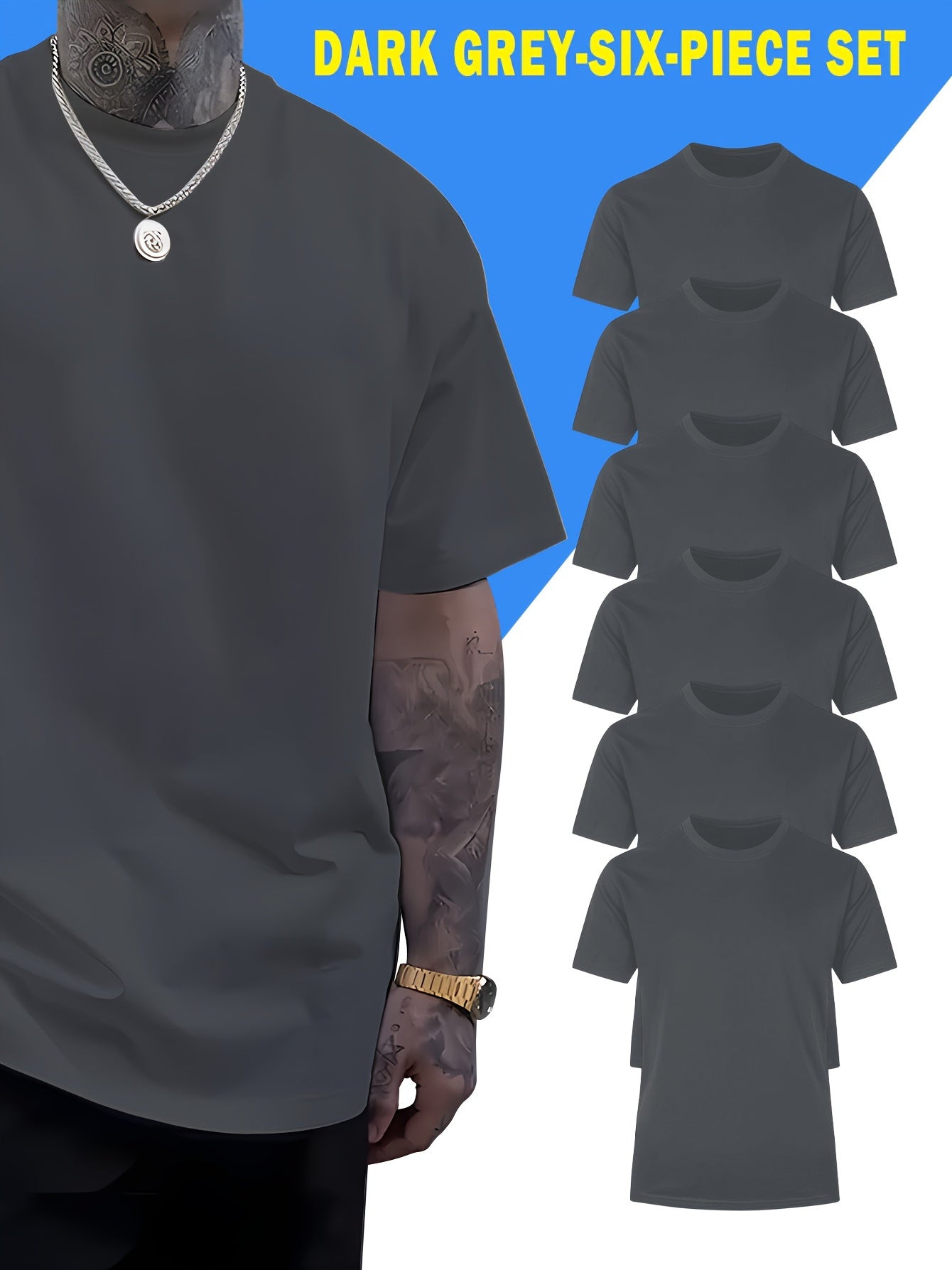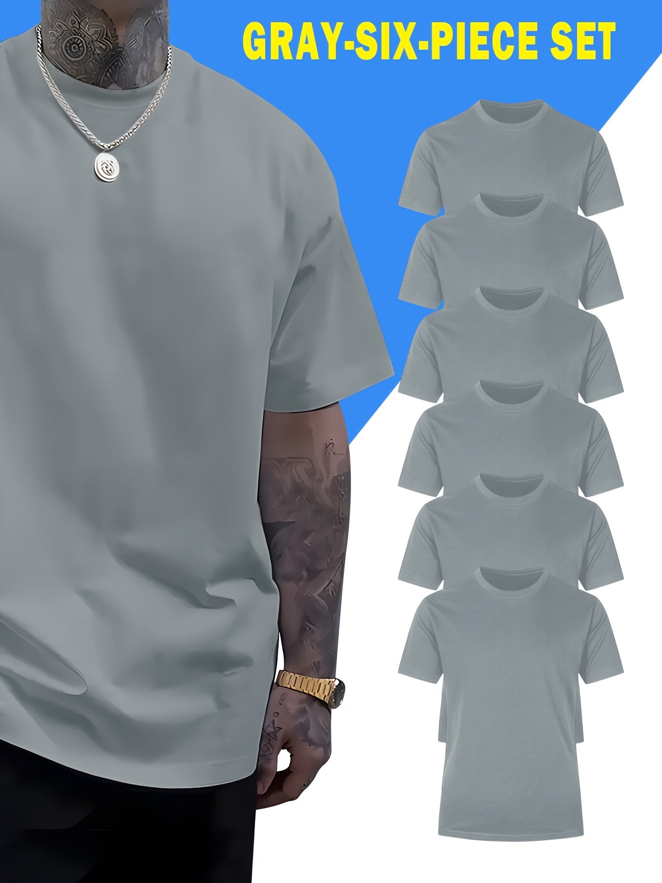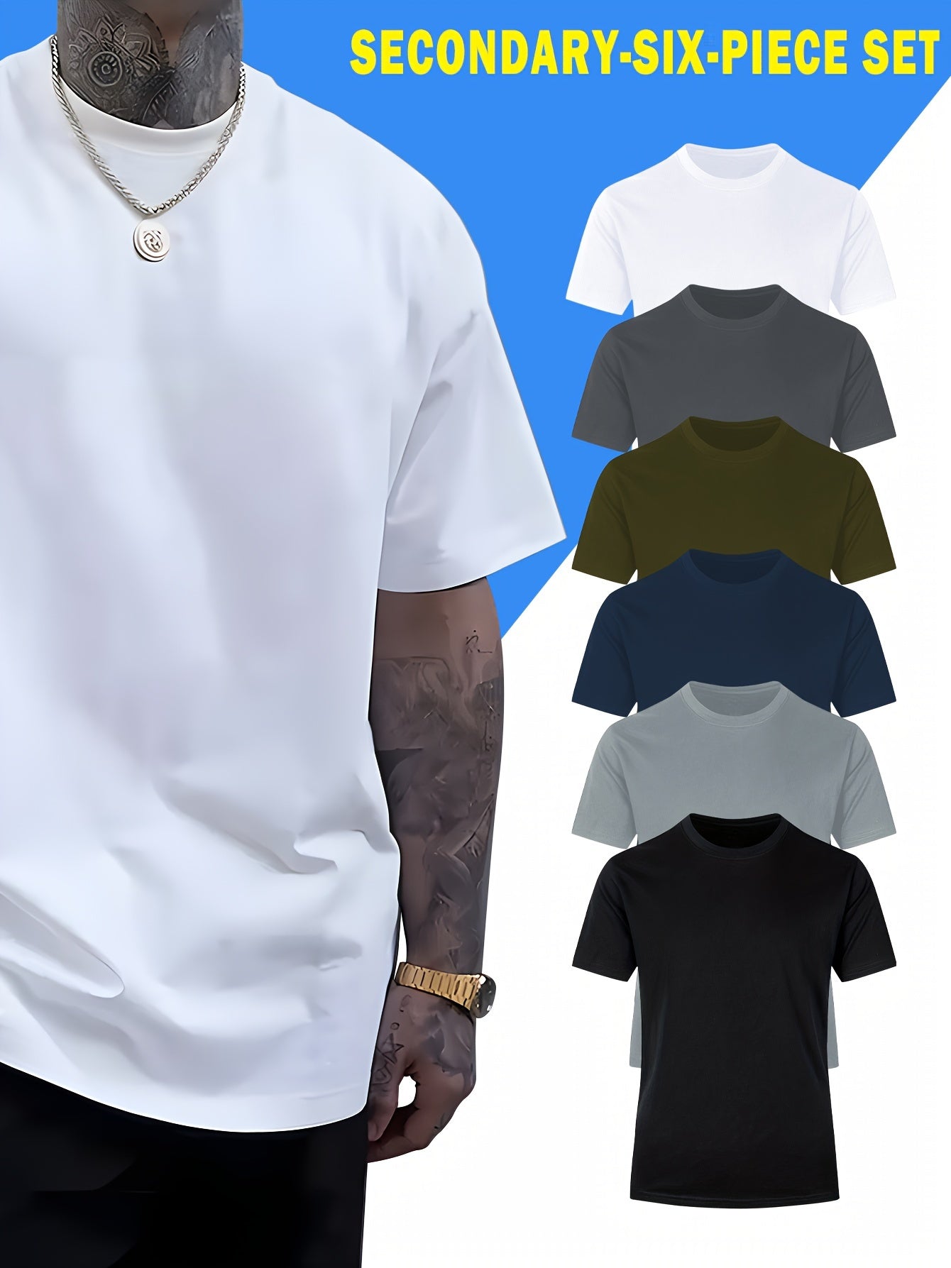 Comfy 6pcs Solid Color Short Sleeve T-shirt - Casual PLUS SIZE Tees for Summer - Mens Clothing
