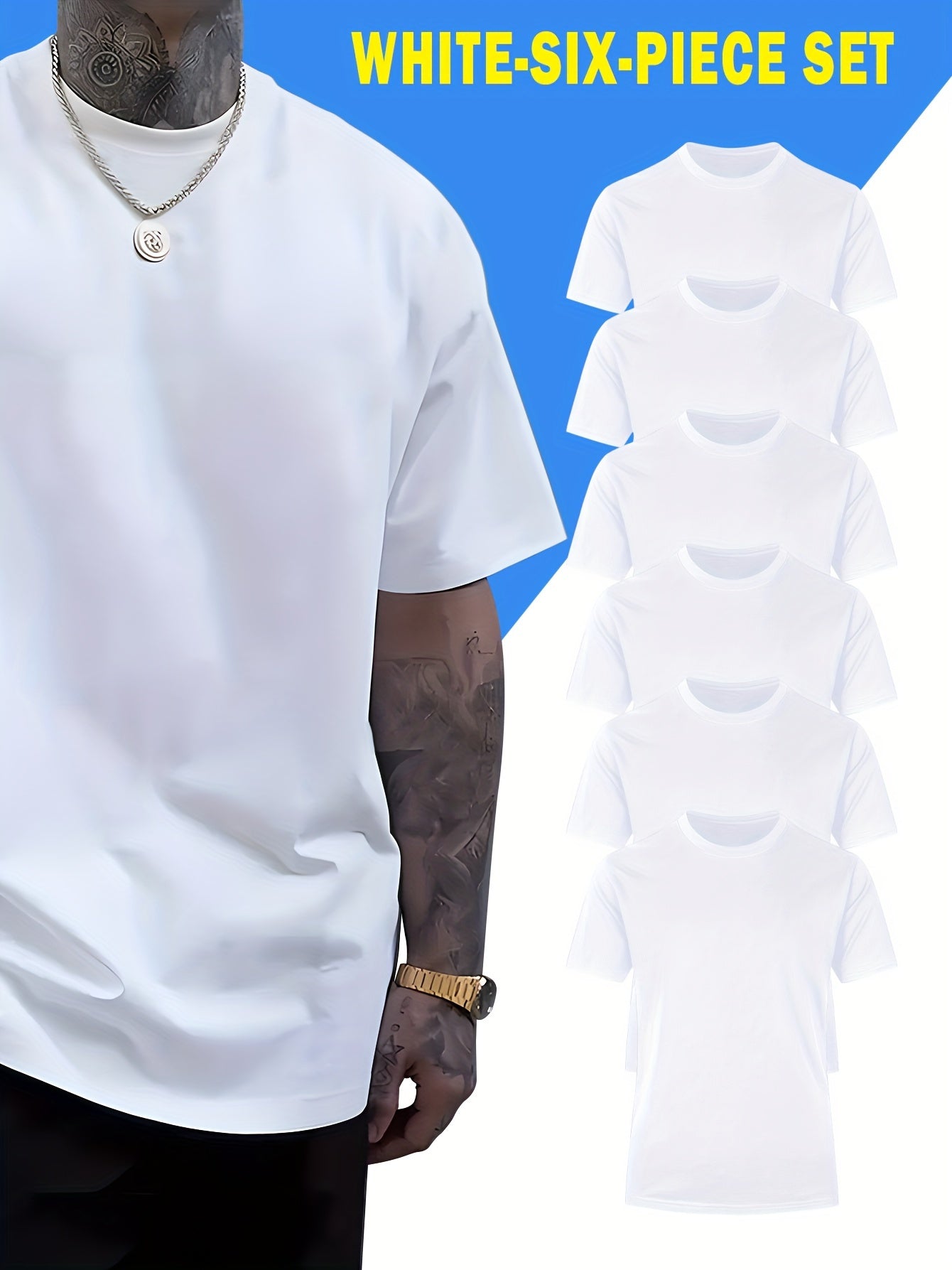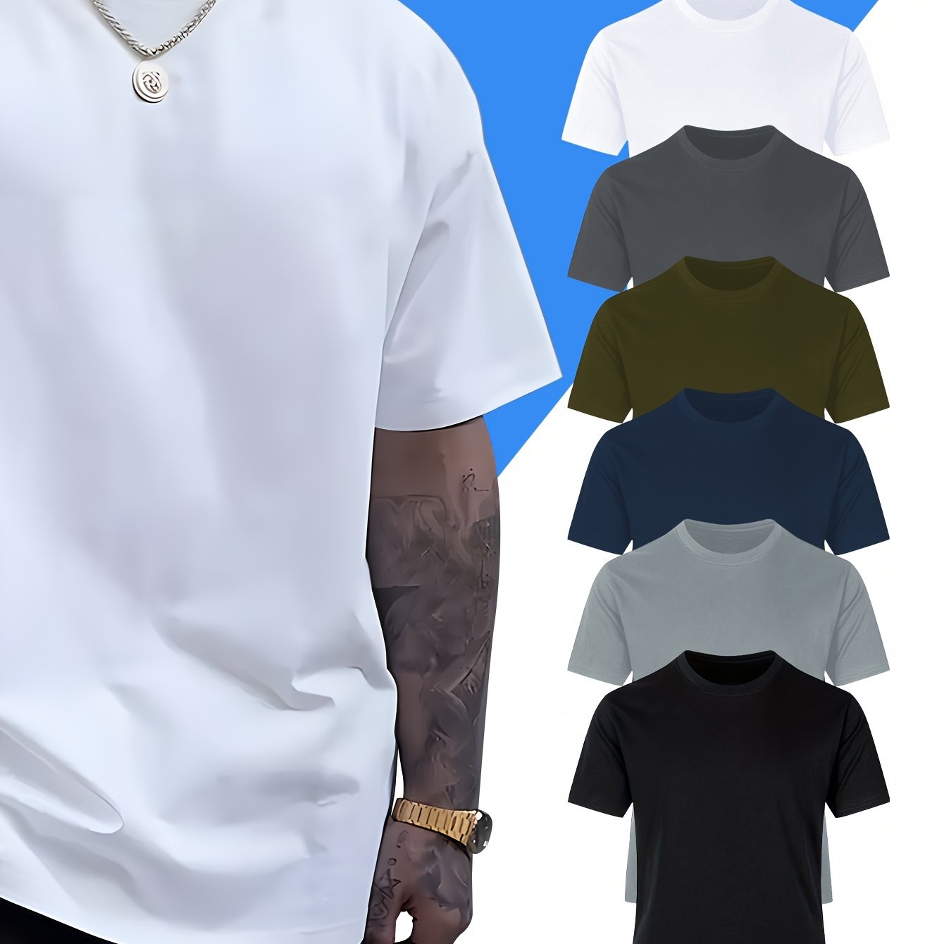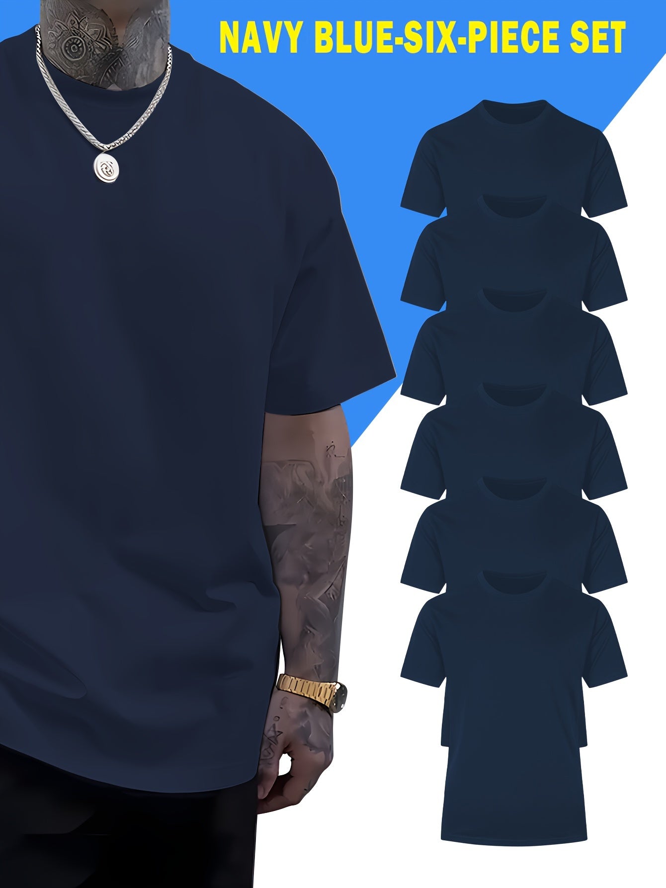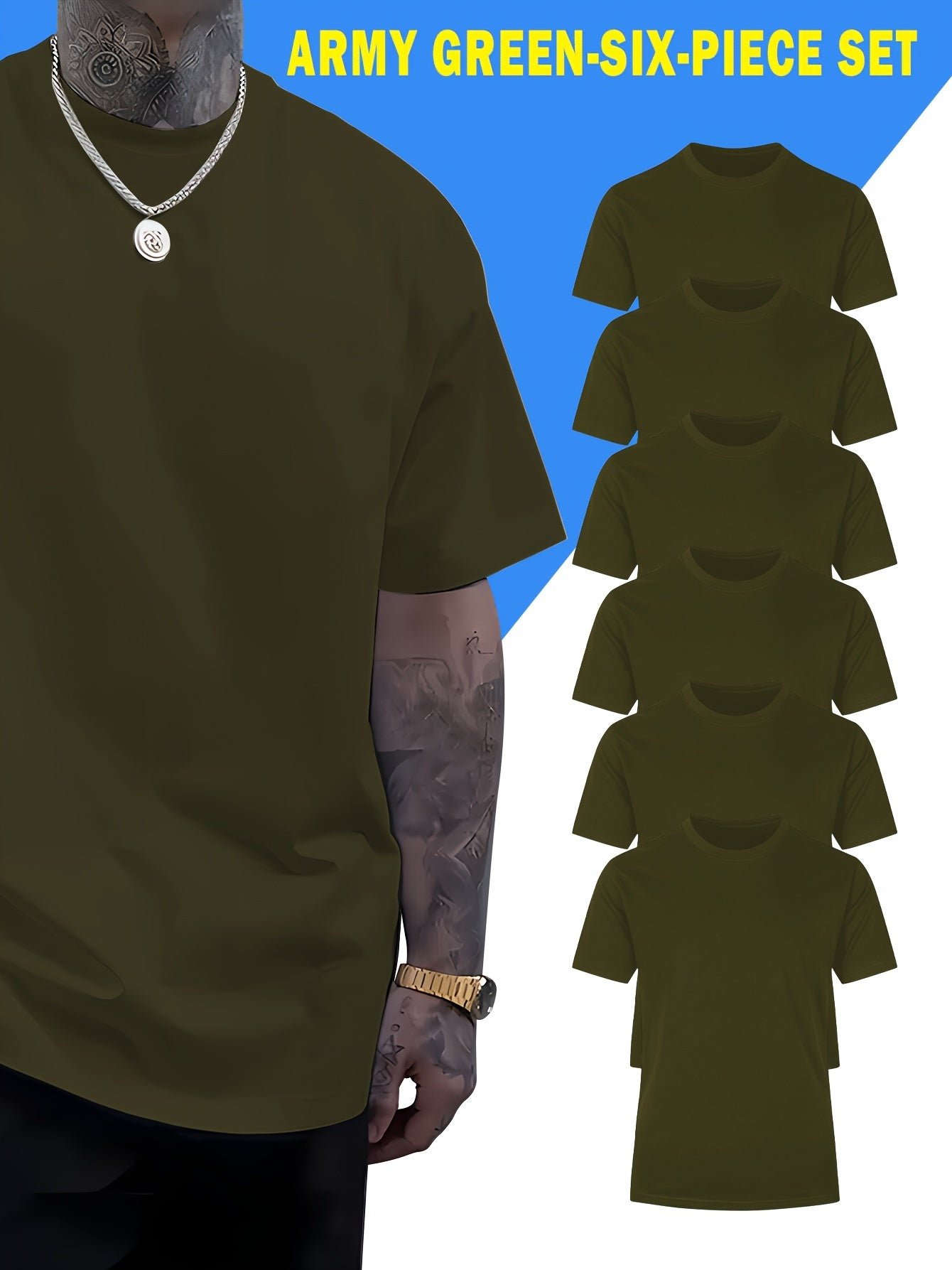 Comfy 6pcs Solid Color Short Sleeve T-shirt - Casual PLUS SIZE Tees for Summer - Mens Clothing