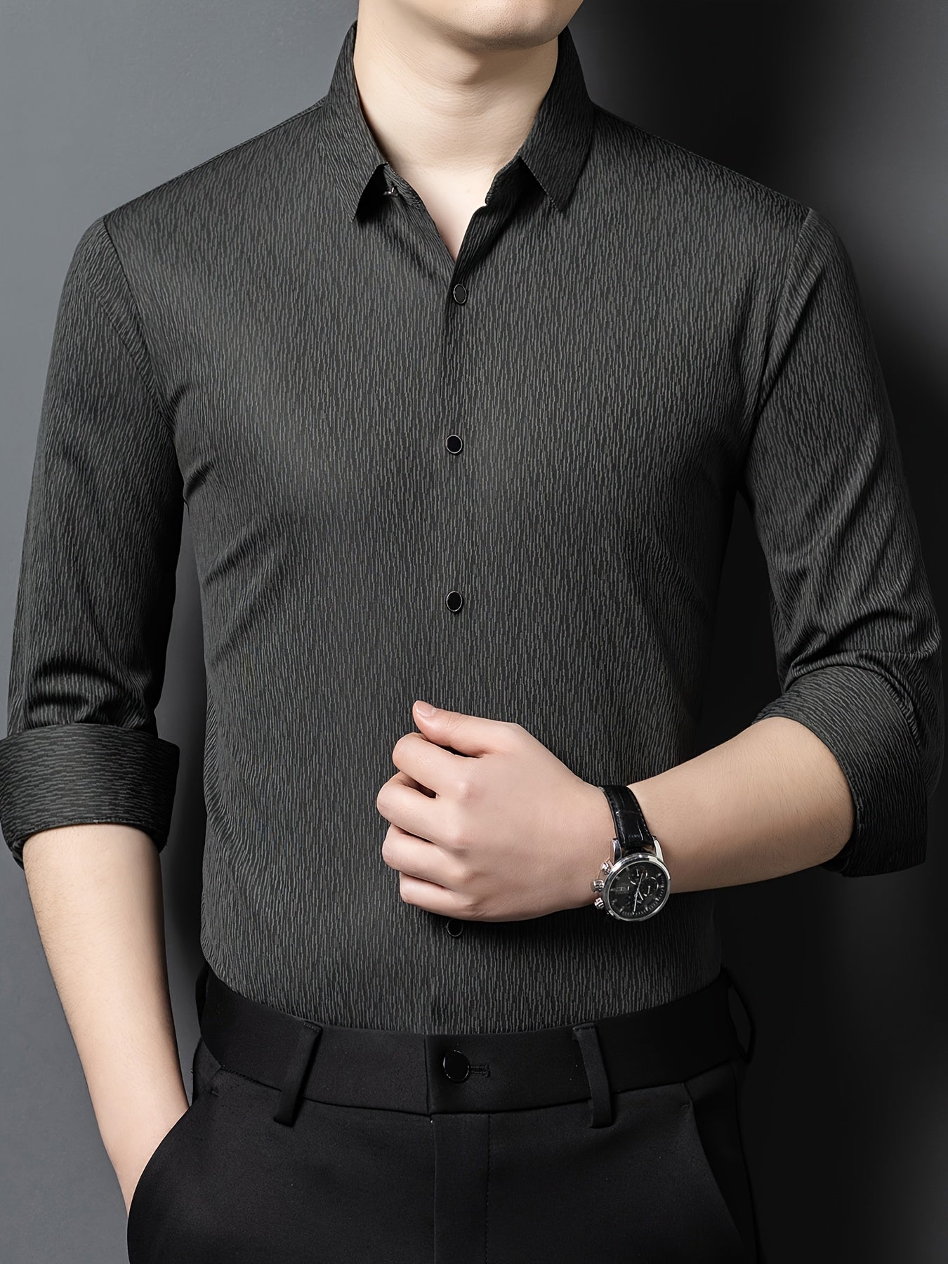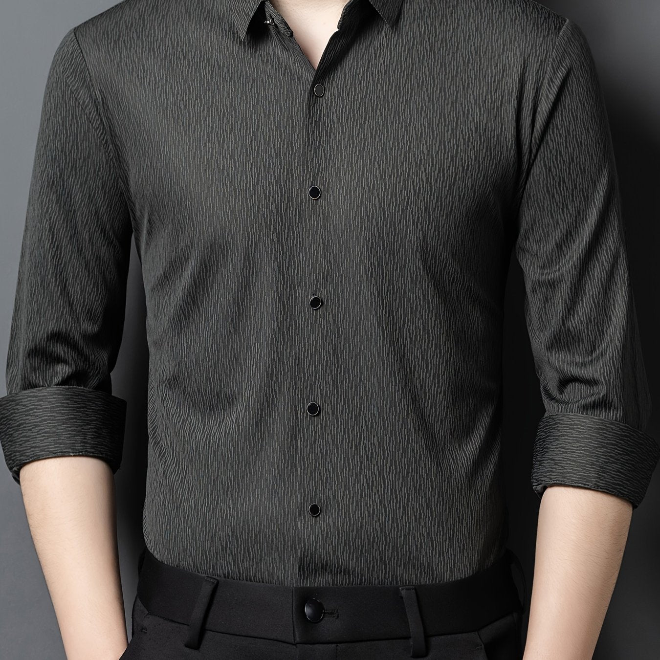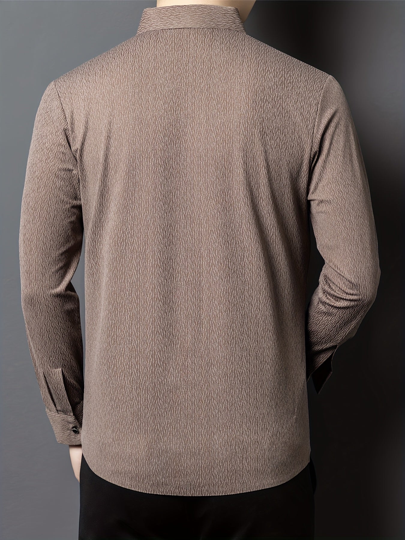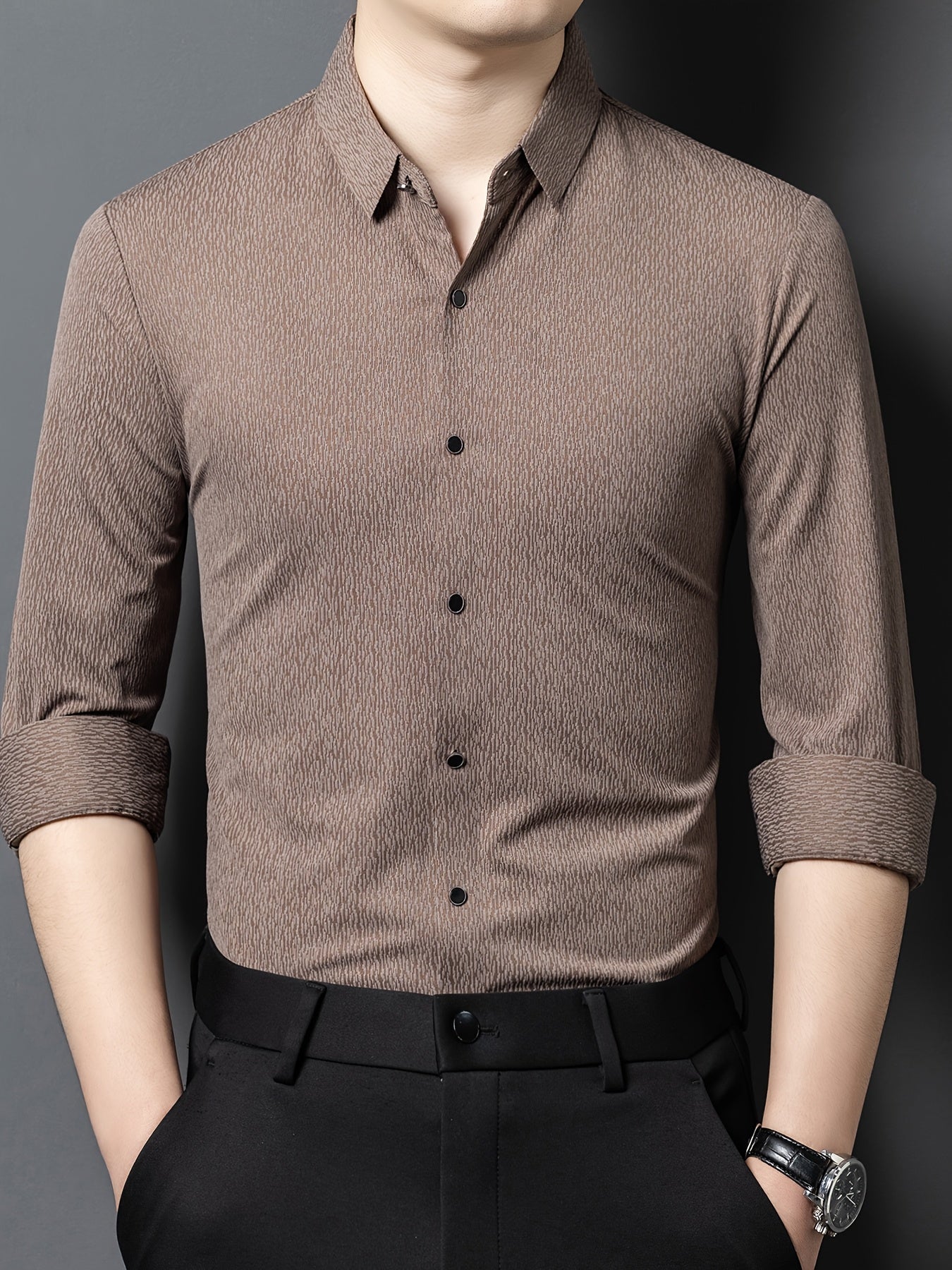 Men's Breathable Long Sleeve Button-Up Shirt - Casual Business Style, Solid Brown, Lightweight Fabric for Spring\u002FFall, Perfect for Office or Leisure Outings,