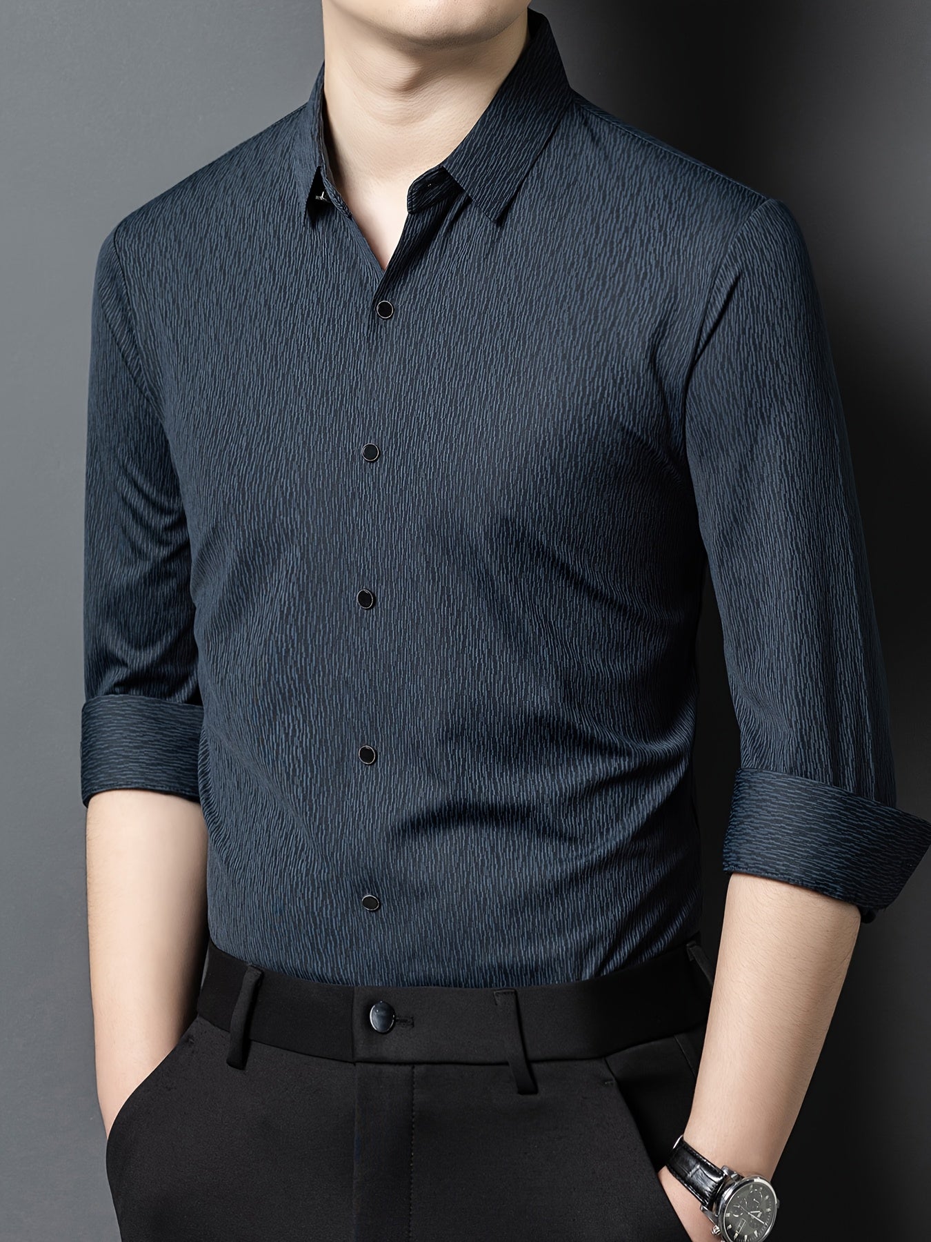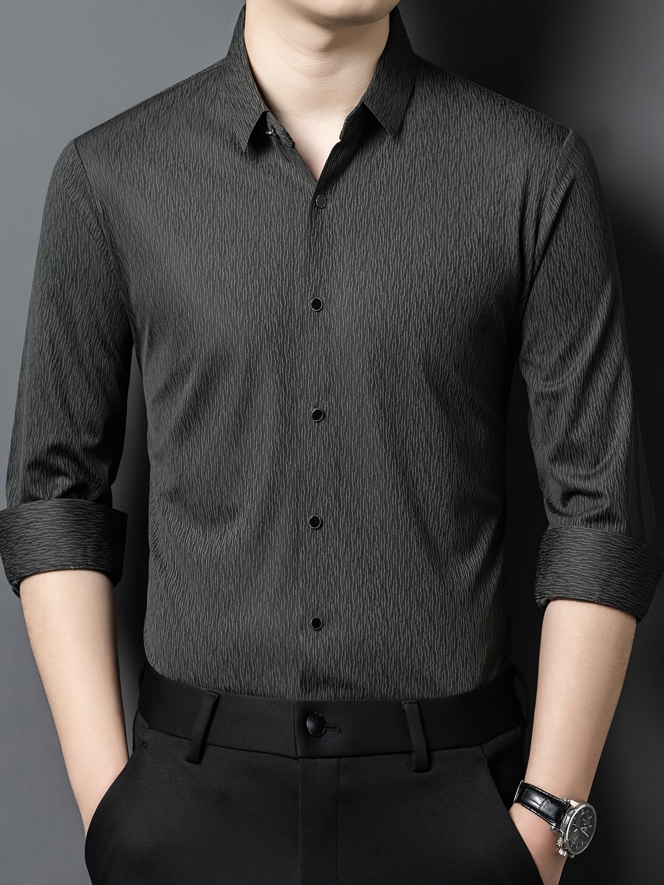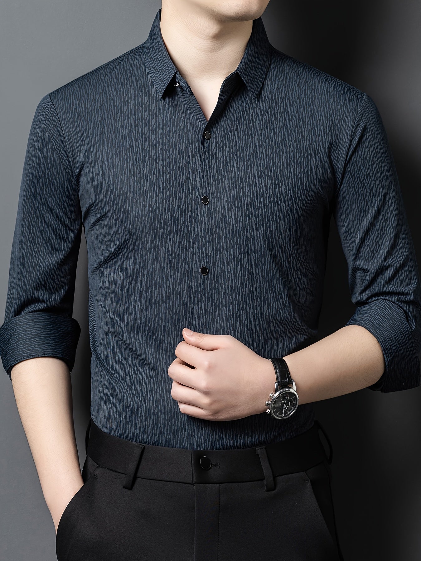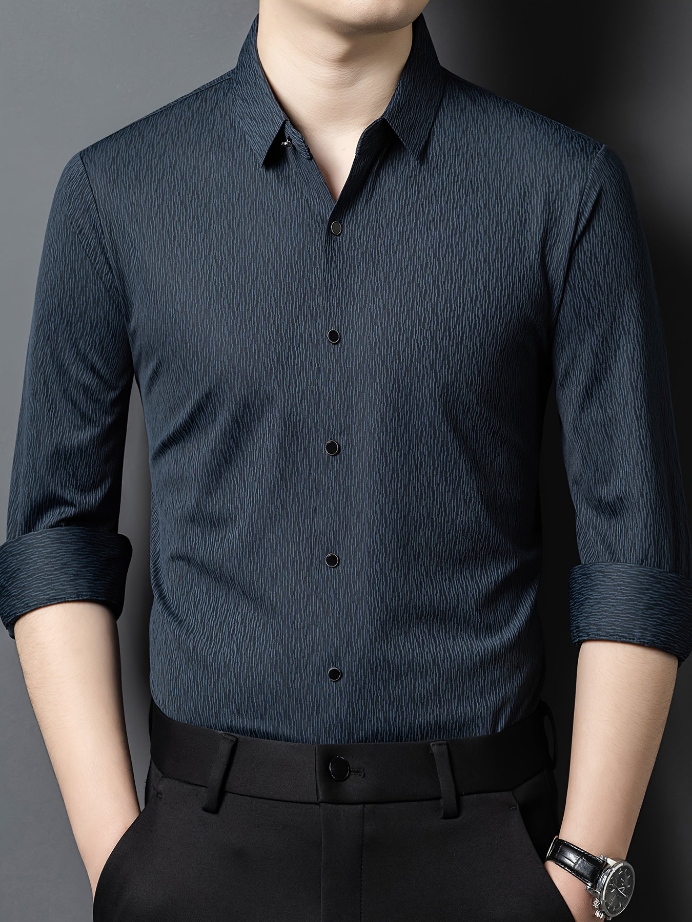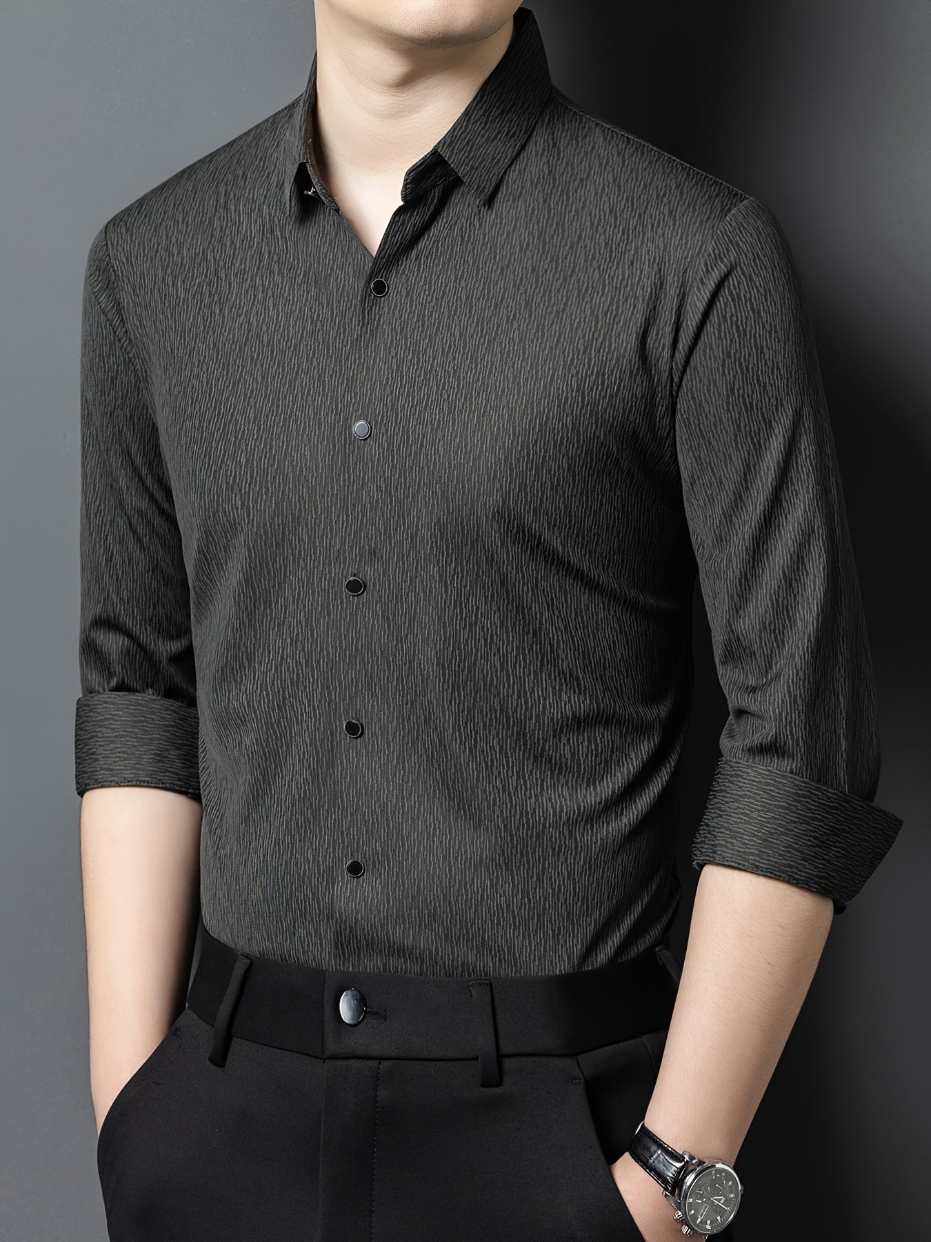 Men's Breathable Long Sleeve Button-Up Shirt - Casual Business Style, Solid Brown, Lightweight Fabric for Spring\u002FFall, Perfect for Office or Leisure Outings,