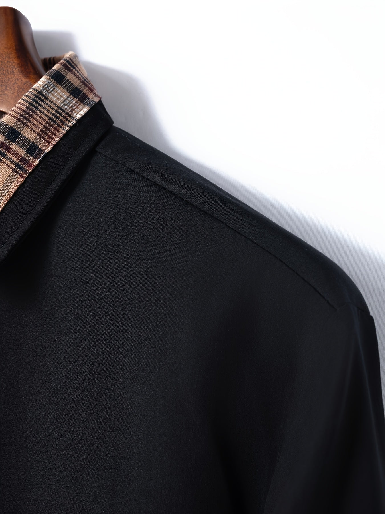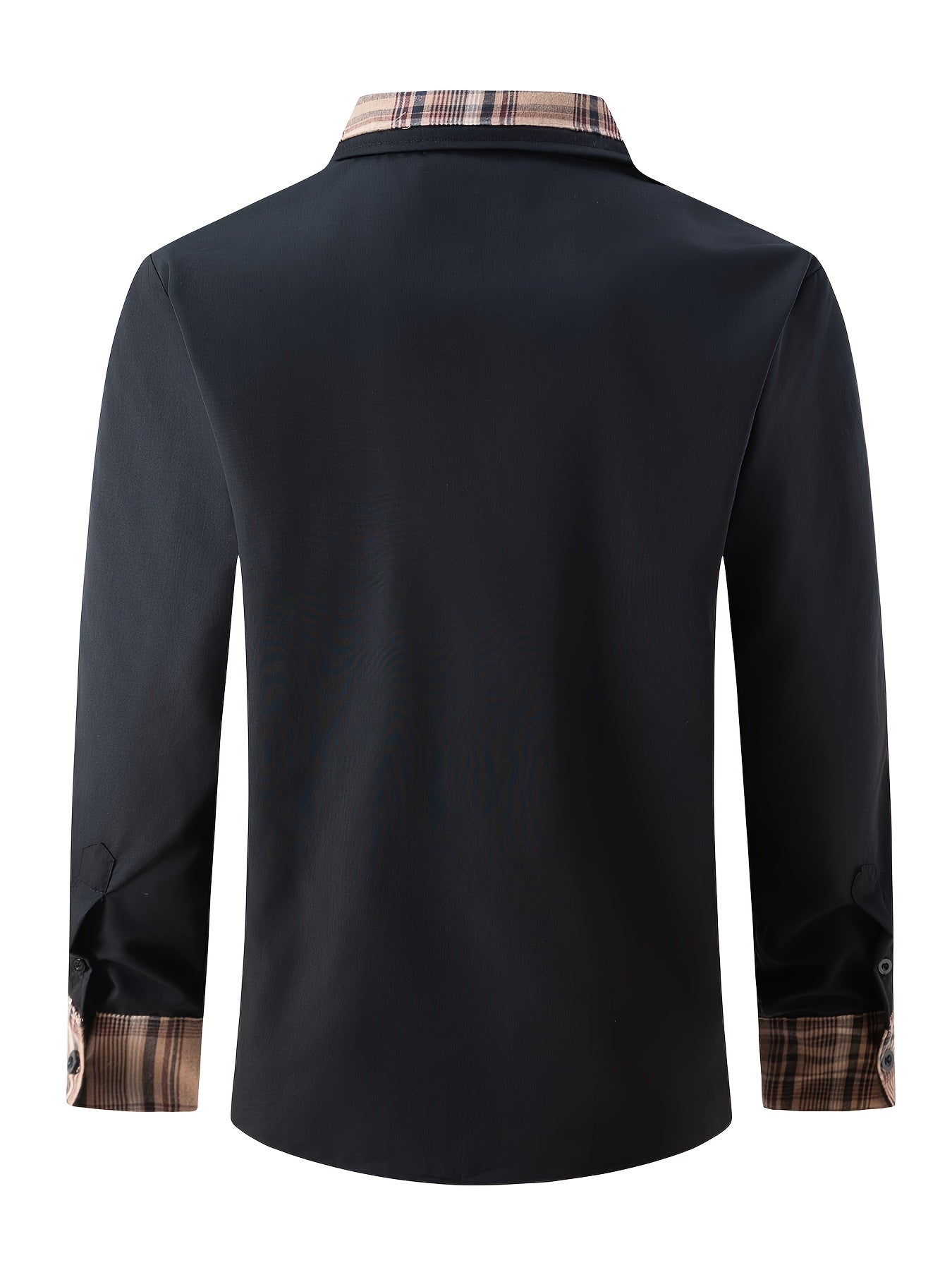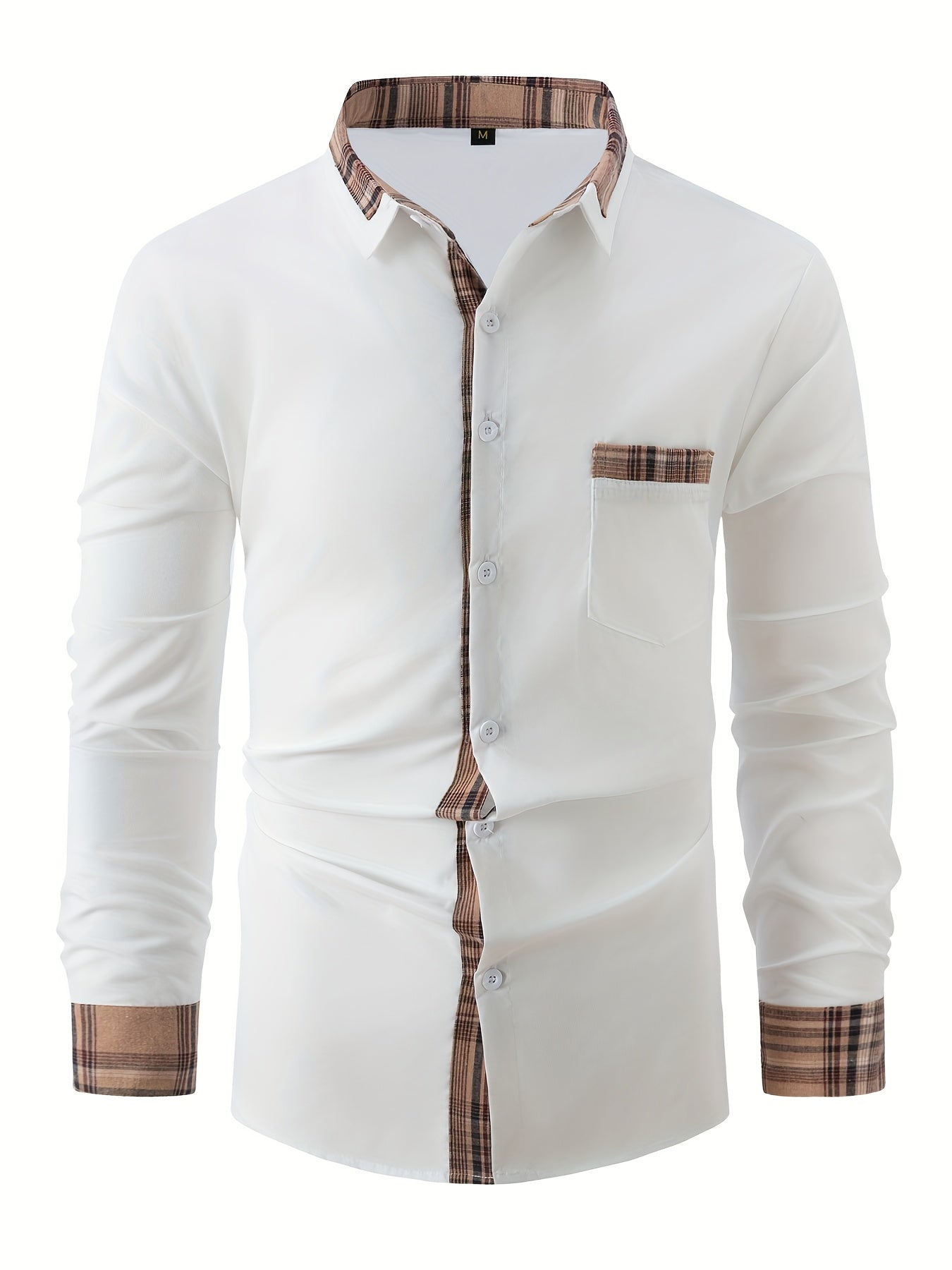 Men'S Casual Long Sleeve Shirt with Color Block Pocket Design - Comfortable Collar, Breathable Fabric,