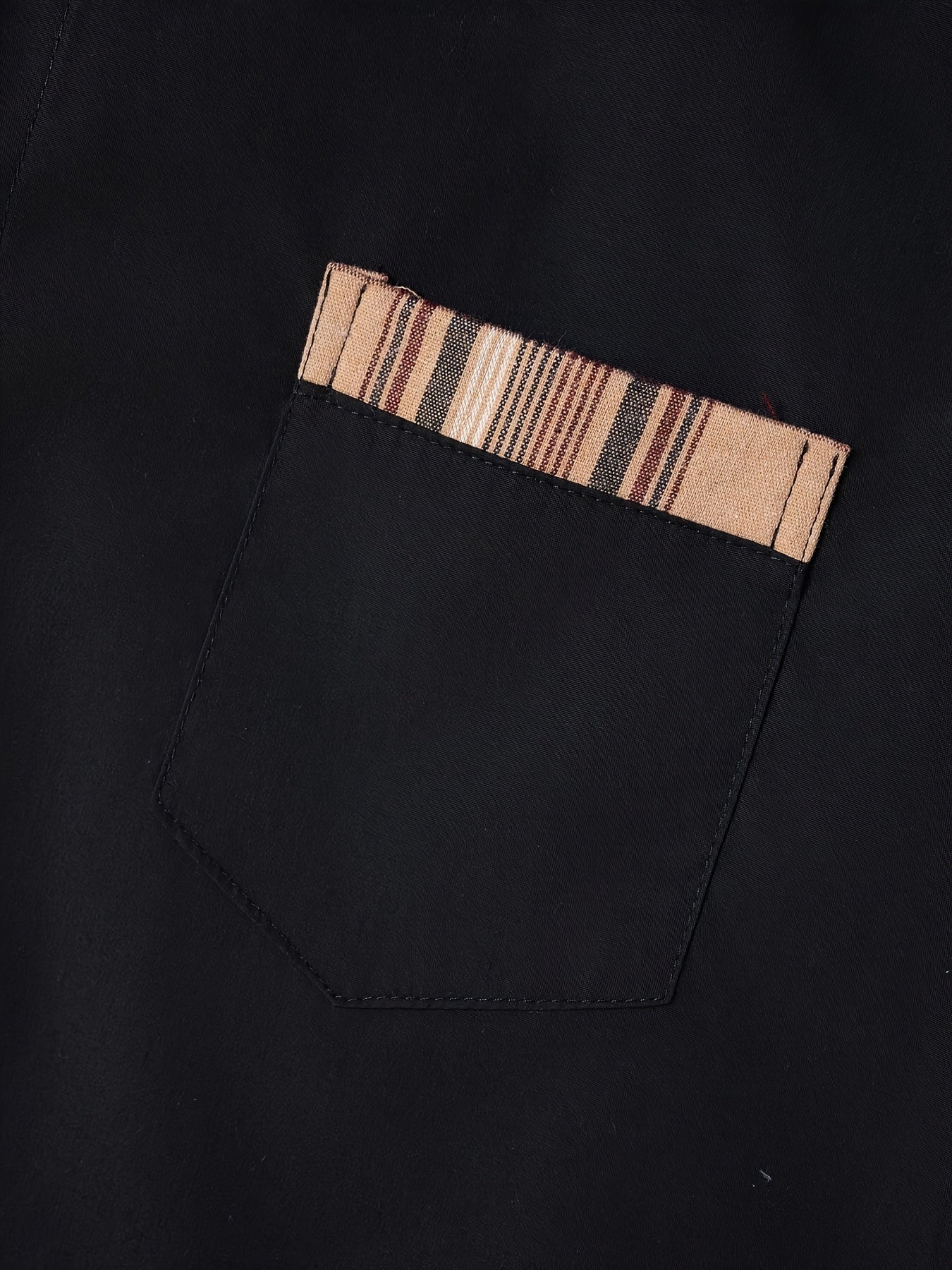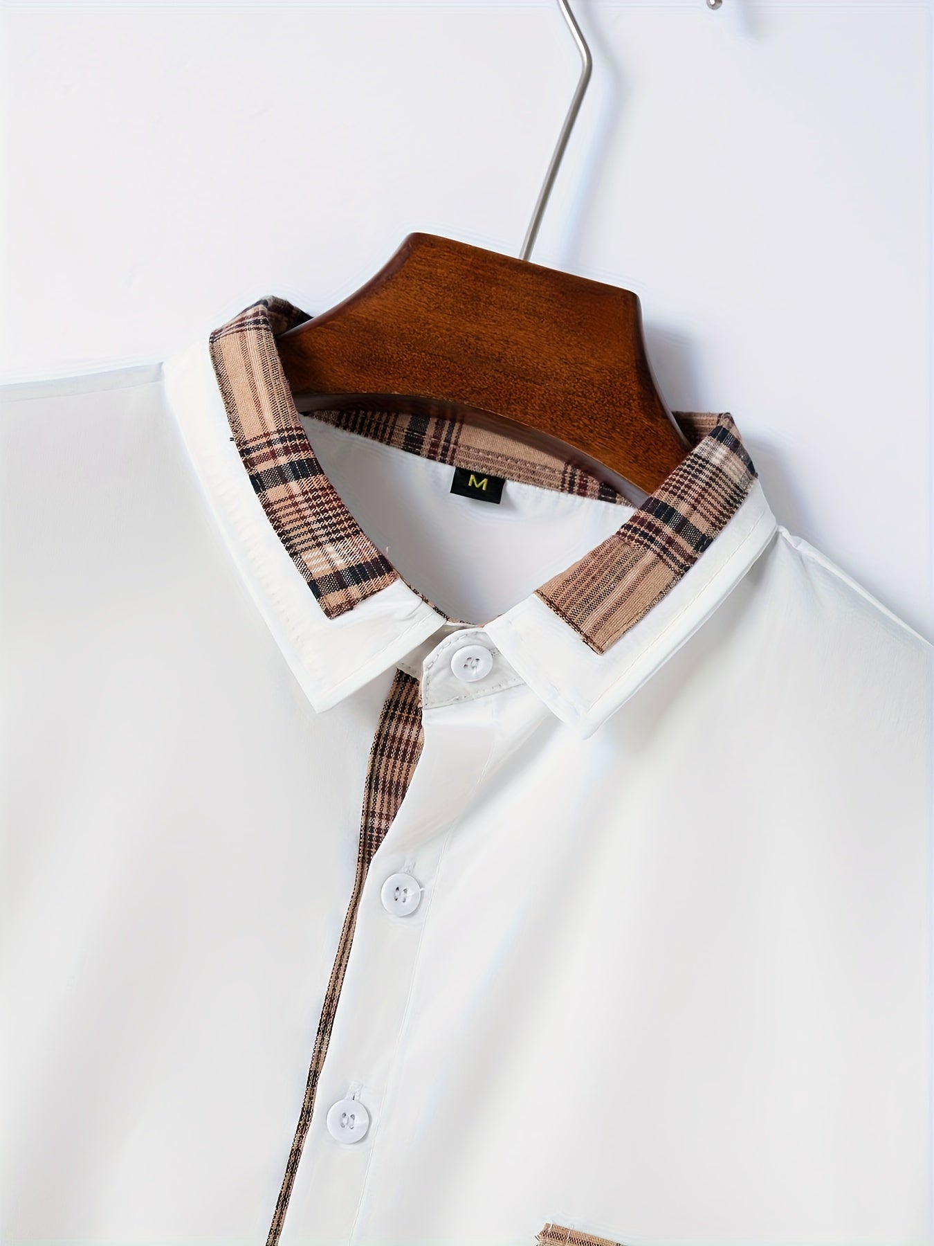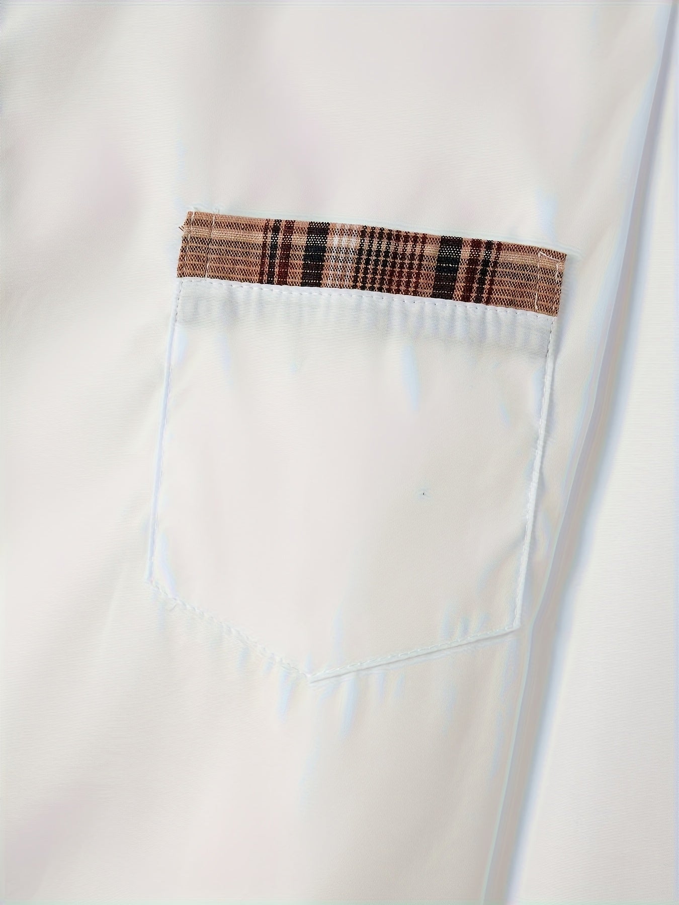 Men'S Casual Long Sleeve Shirt with Color Block Pocket Design - Comfortable Collar, Breathable Fabric,