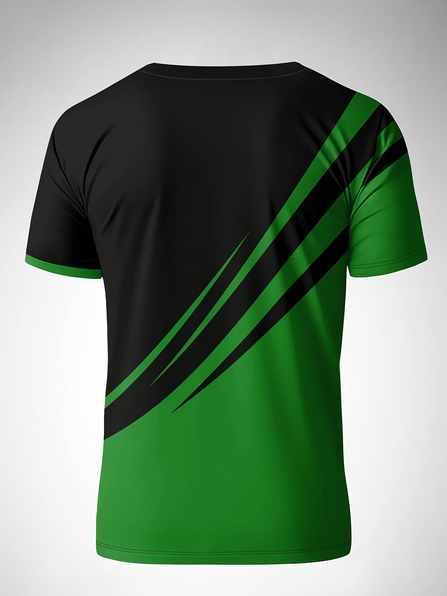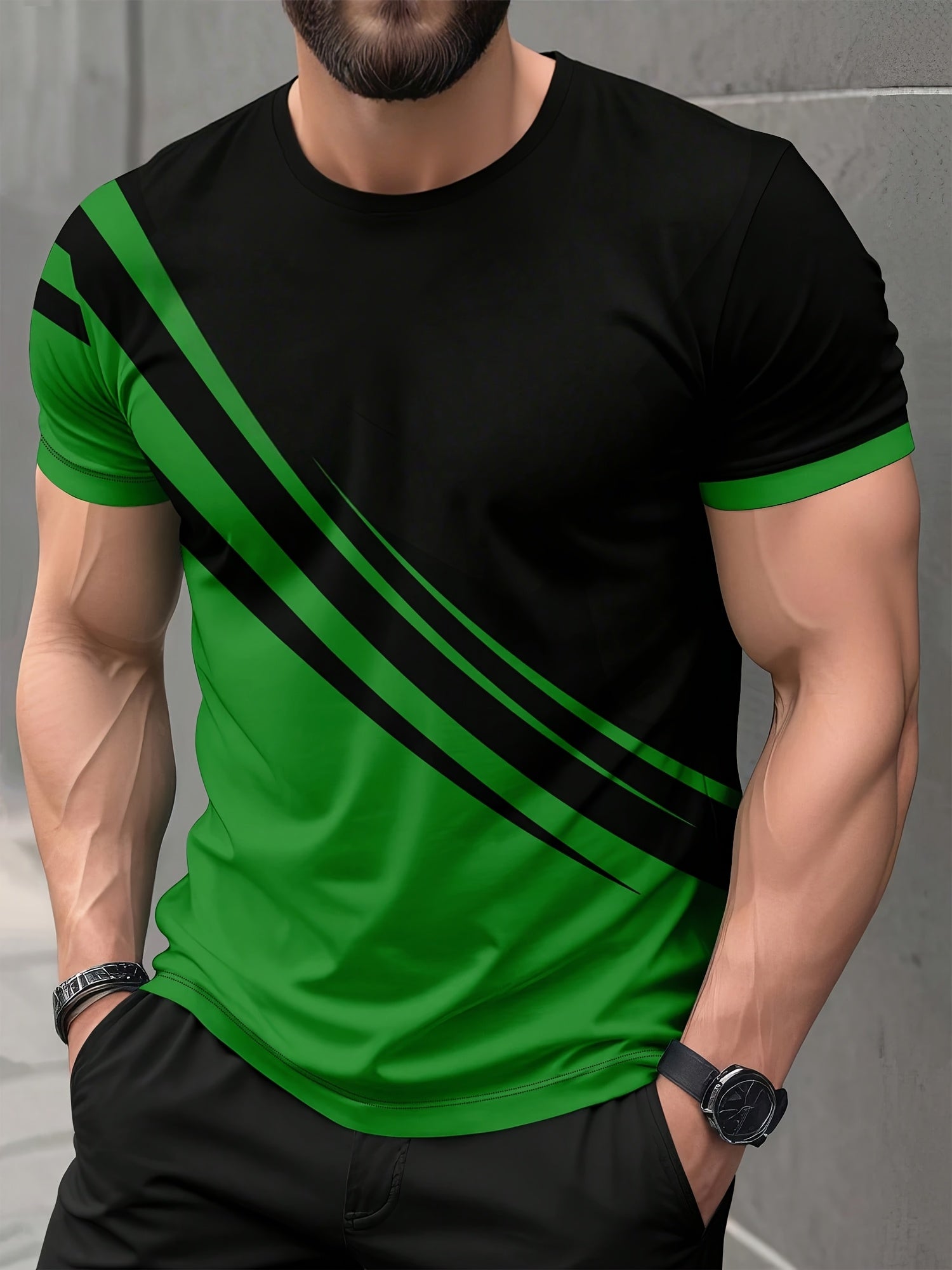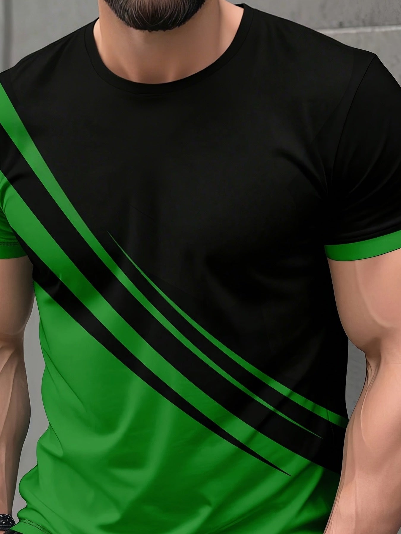 Men'S Casual T-Shirt with Bold Green & Black Striped Design - Breathable Short Sleeve Round Neck Tee,