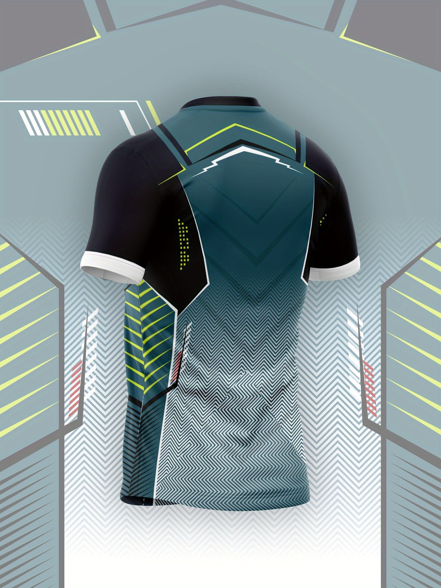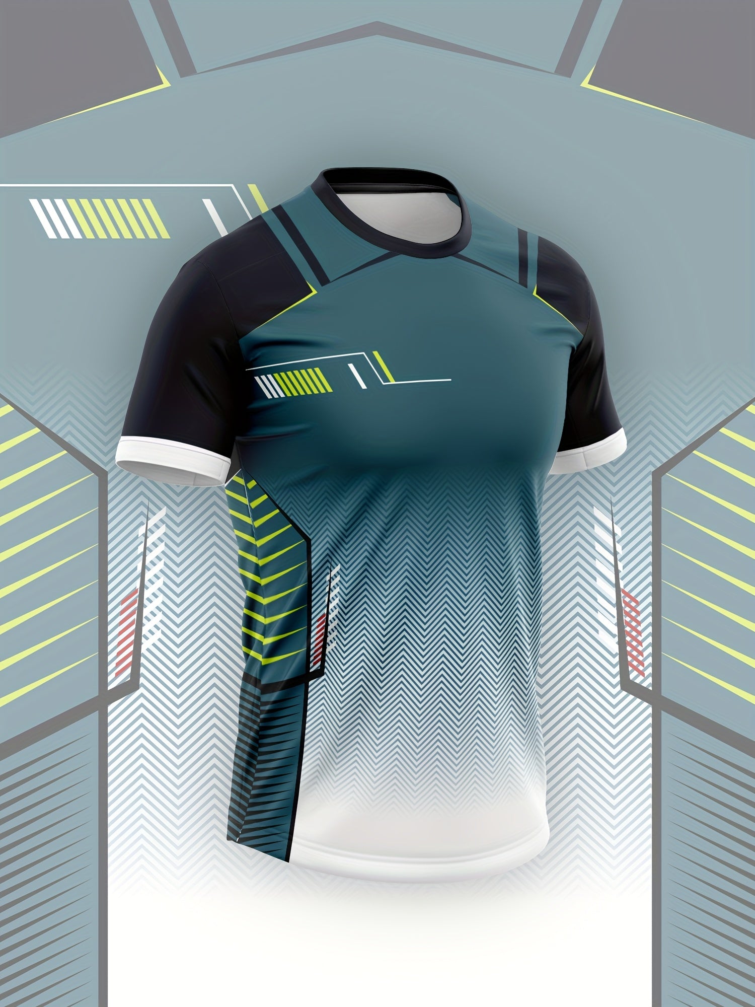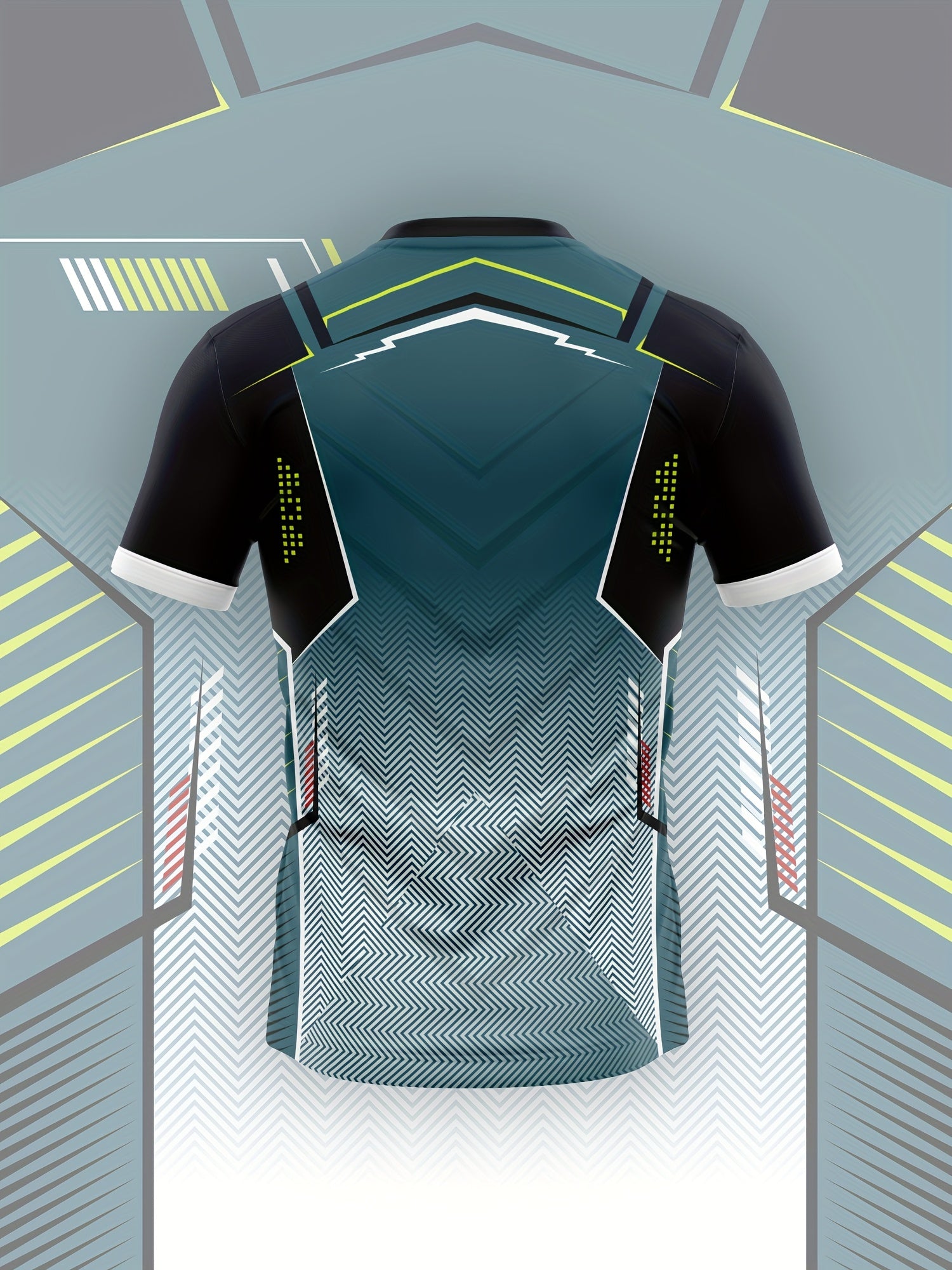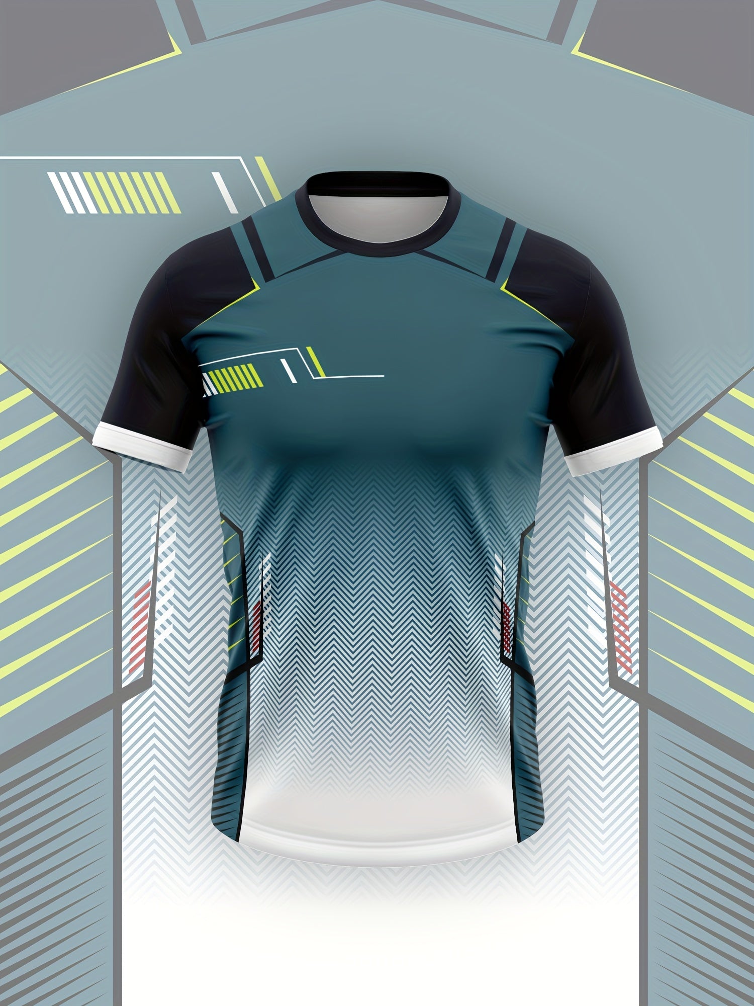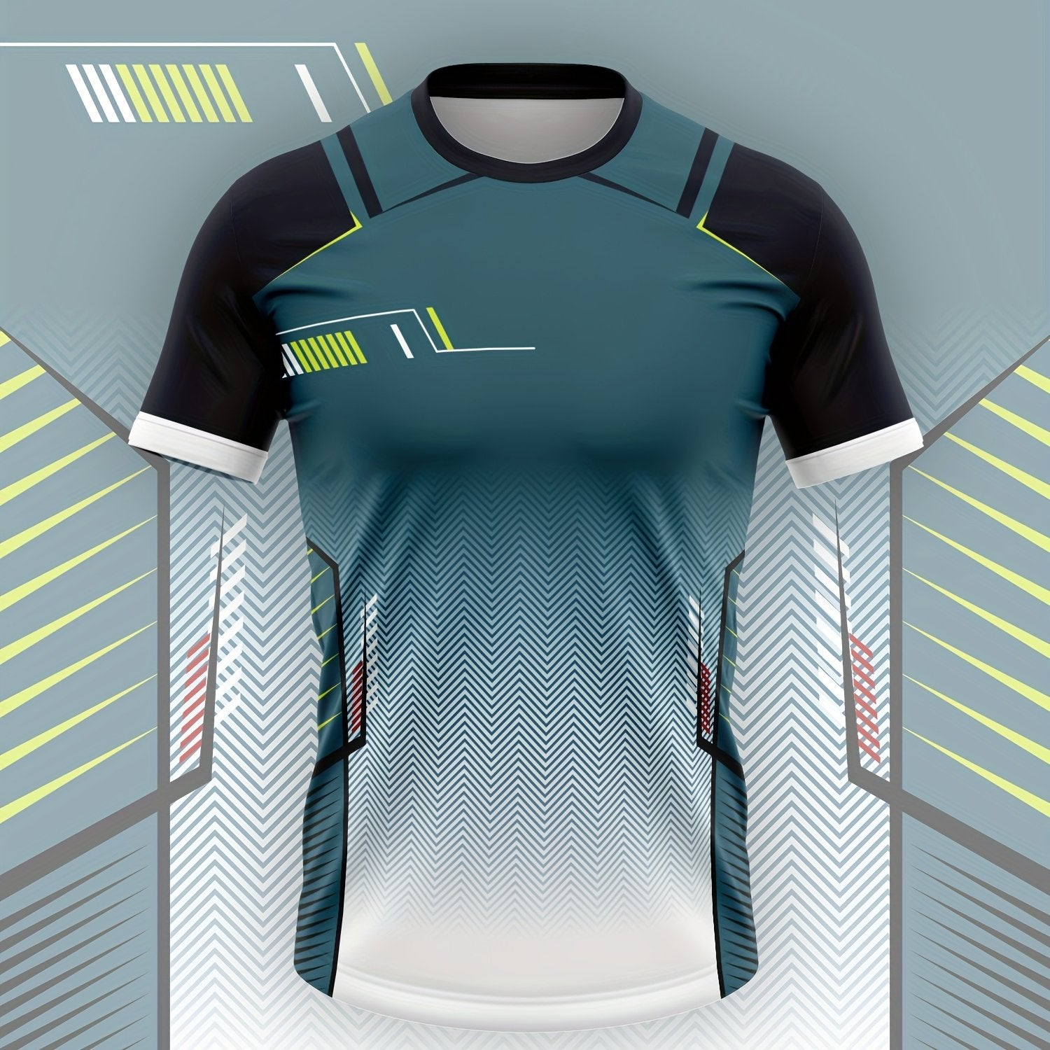 Men'S High-Elasticity Sporty T-Shirt - Geometric Pattern, Slim Fit, Breathable & Tear-Resistant for Running, Yoga,