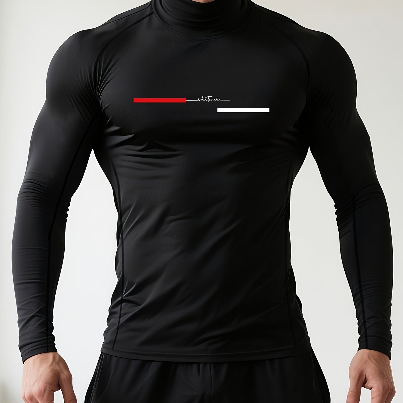 Men'S High Neck Compression Shirt - Long Sleeve Workout Top with Motivational Graphic, Muscle Fit Gym Shirt,