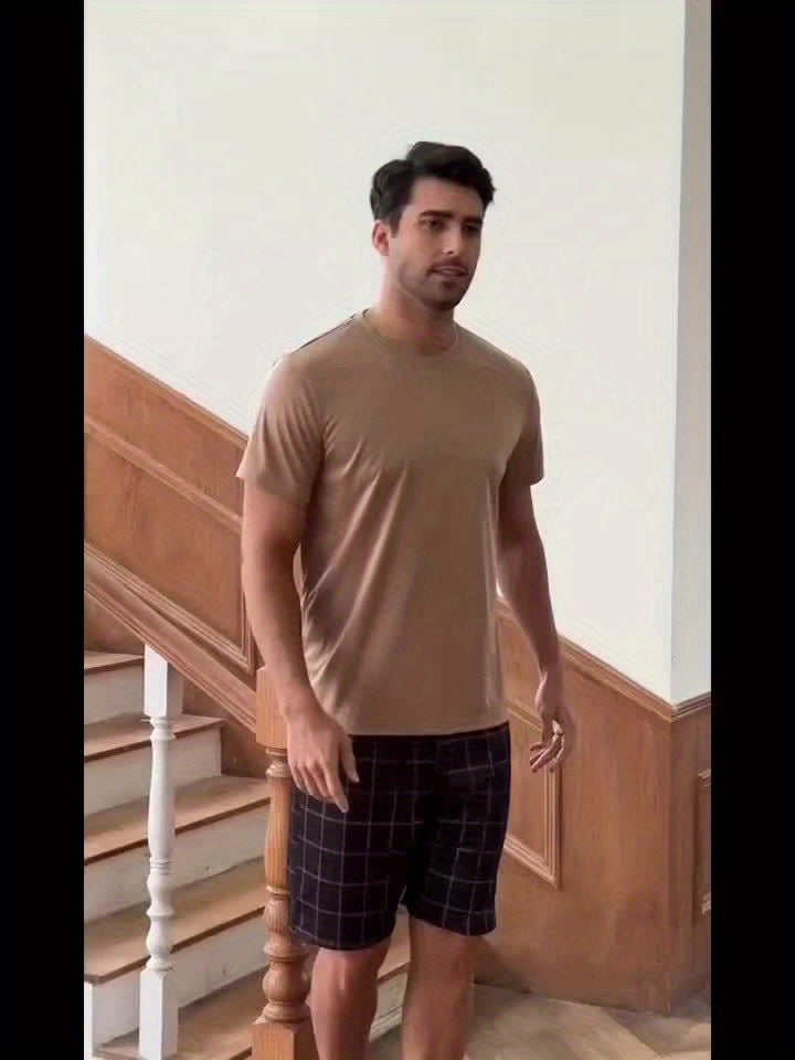 Men's Home Wear Solid Color T-shirt 4pcs Set