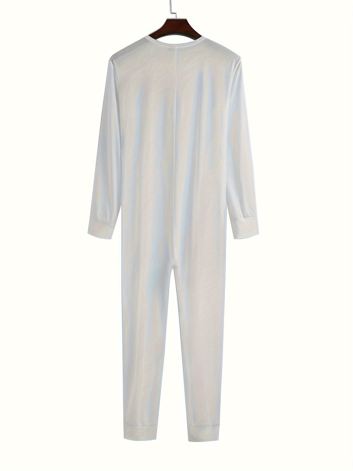Men's Lightweight Slim-Fit Long Sleeve Bodysuit - Stretchy Non-Transparent Fabric, Full Coverage Comfort for Lounge, Sleep & Casual Wear - Soft Breathable Easy-Care