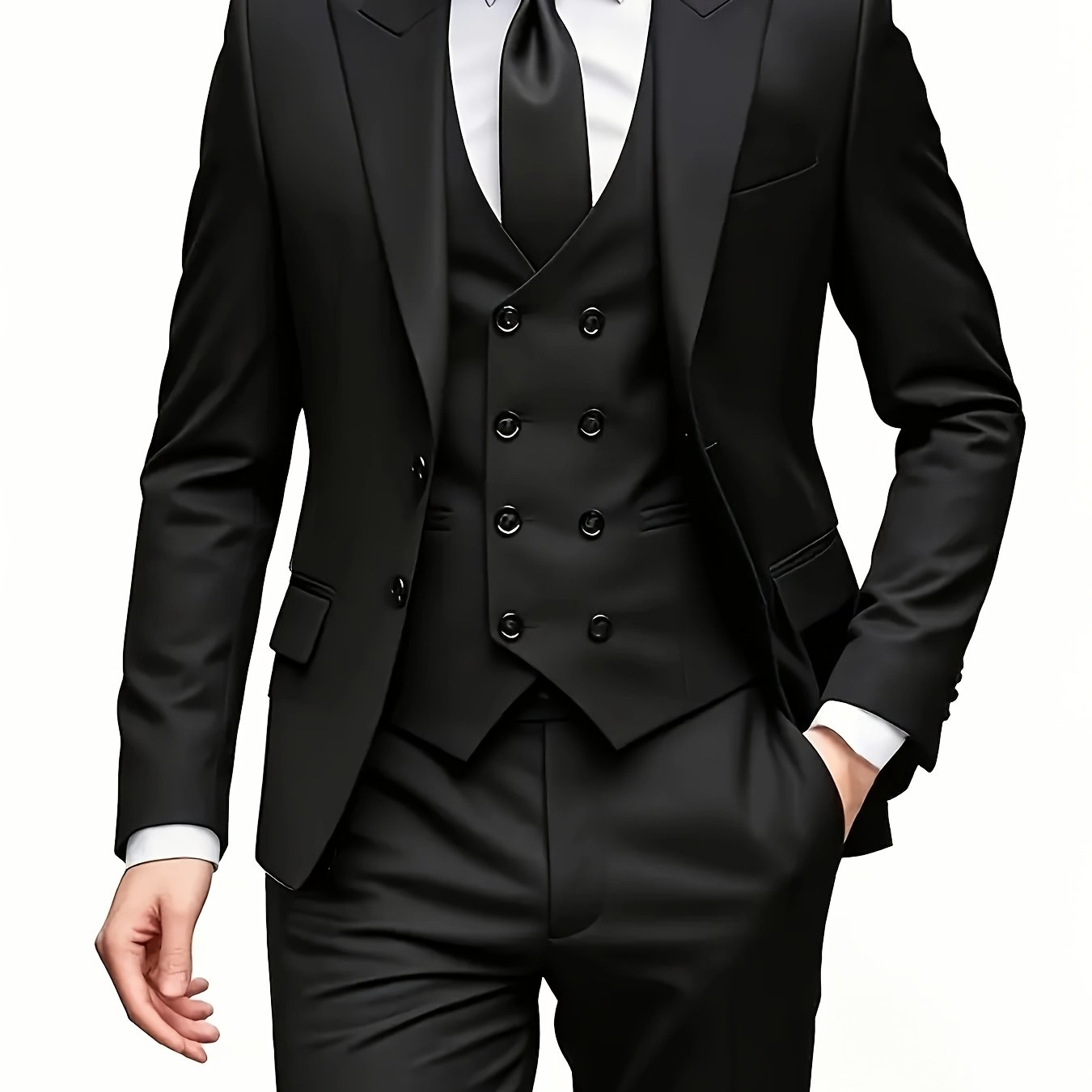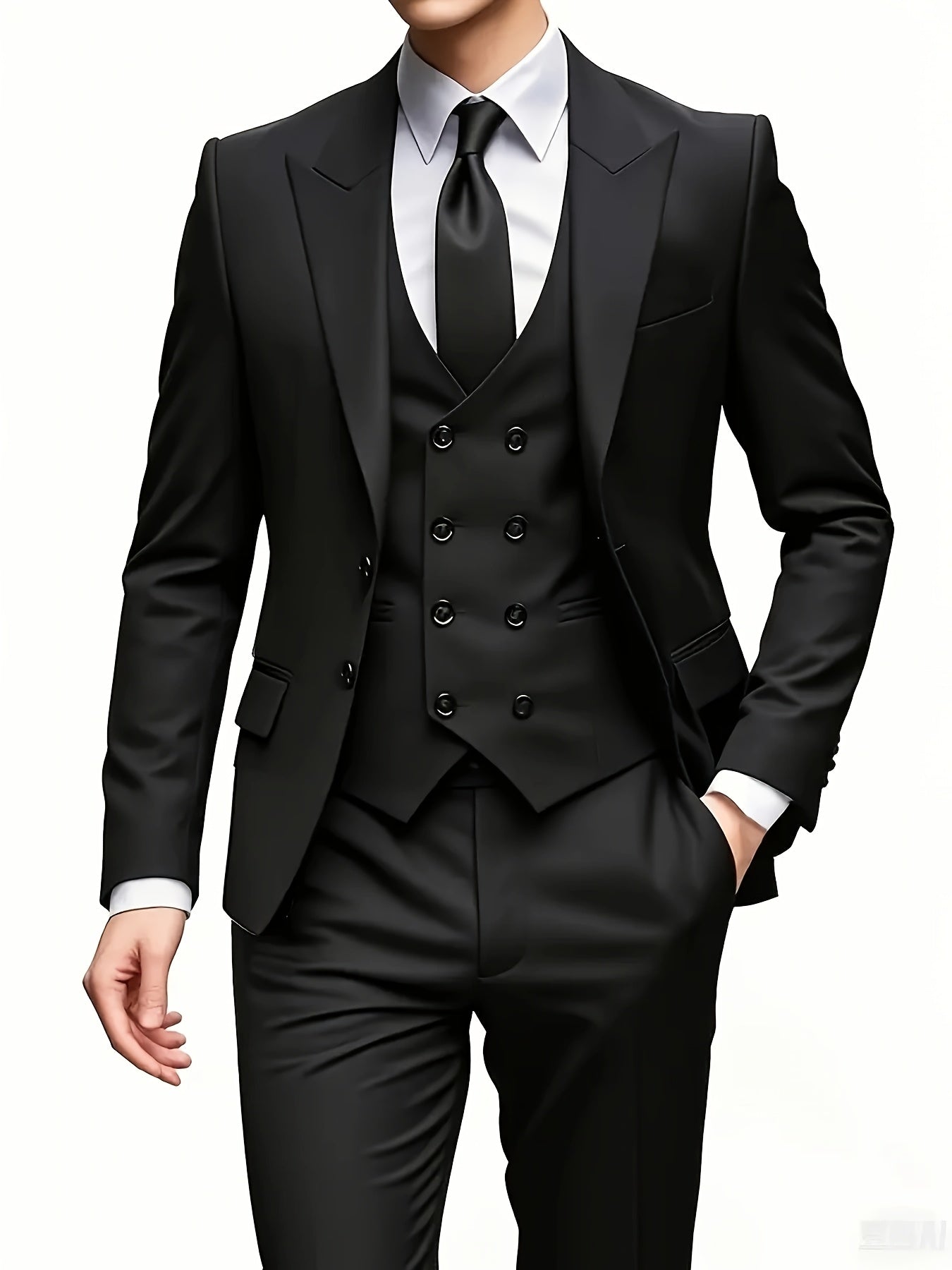 Men's Notch Lapel Suit Set, Single-Breasted Double-Breasted Jacket with Pants and Vest, Suitable for Formal Wear, Wedding Attire, Workwear, or Festive Gift