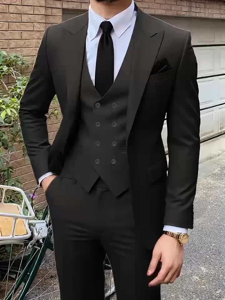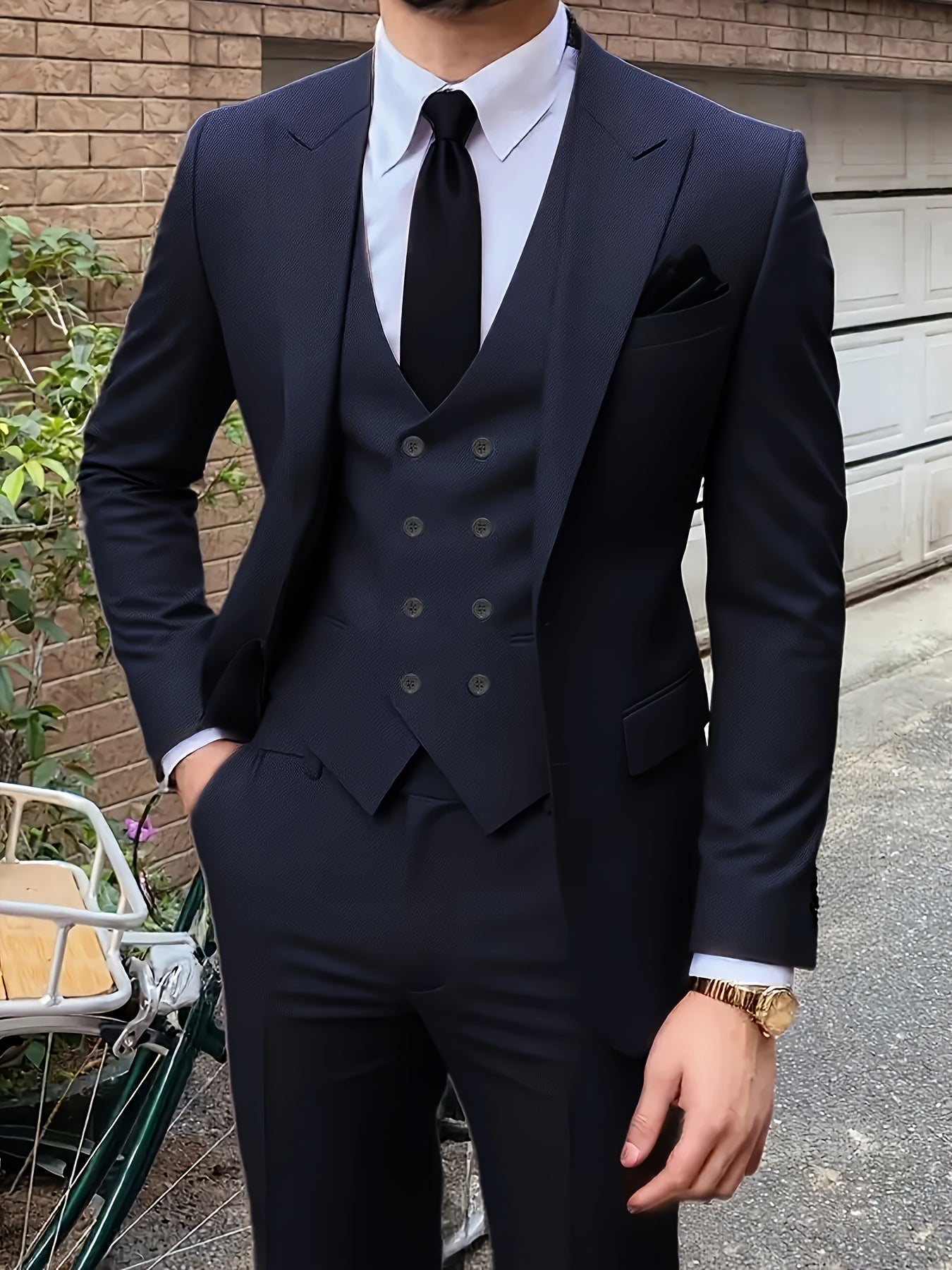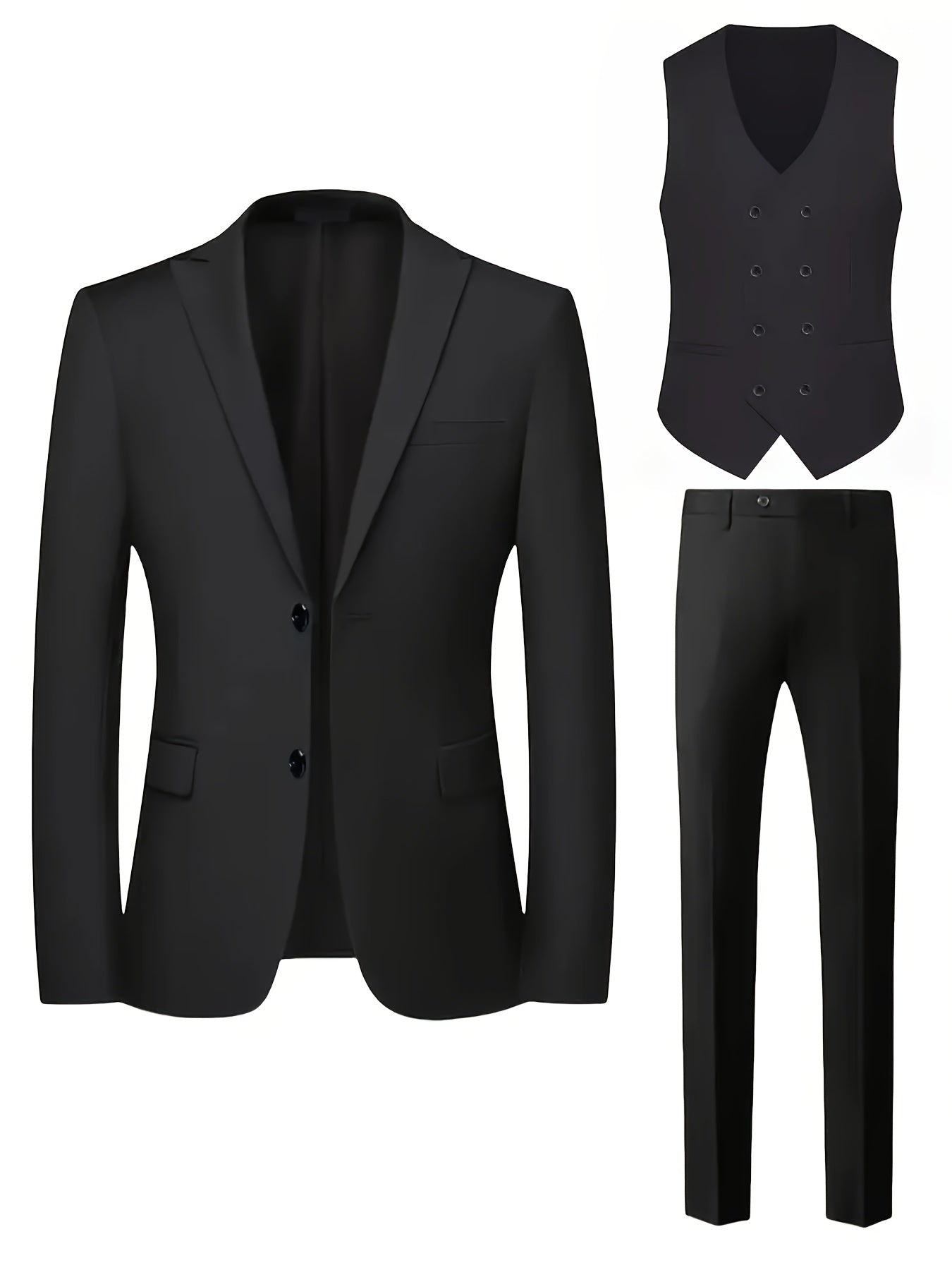 Men'S Premium Three-Piece Suit - Formal Blazer, Trousers & Vest with Black Tie & Pocket Square - Ideal for Weddings, Work, and Formal Events - Durable Woven Fabric,