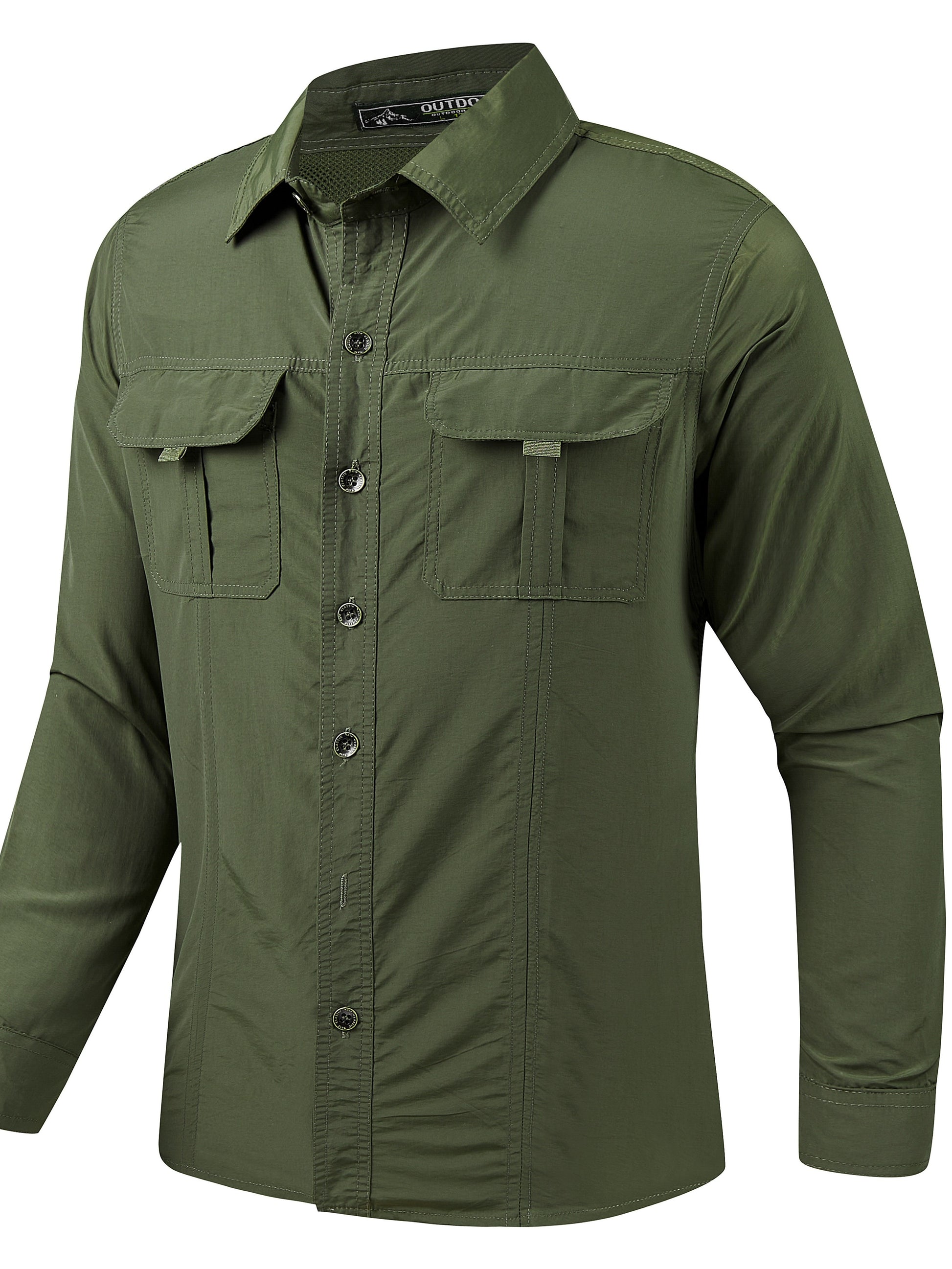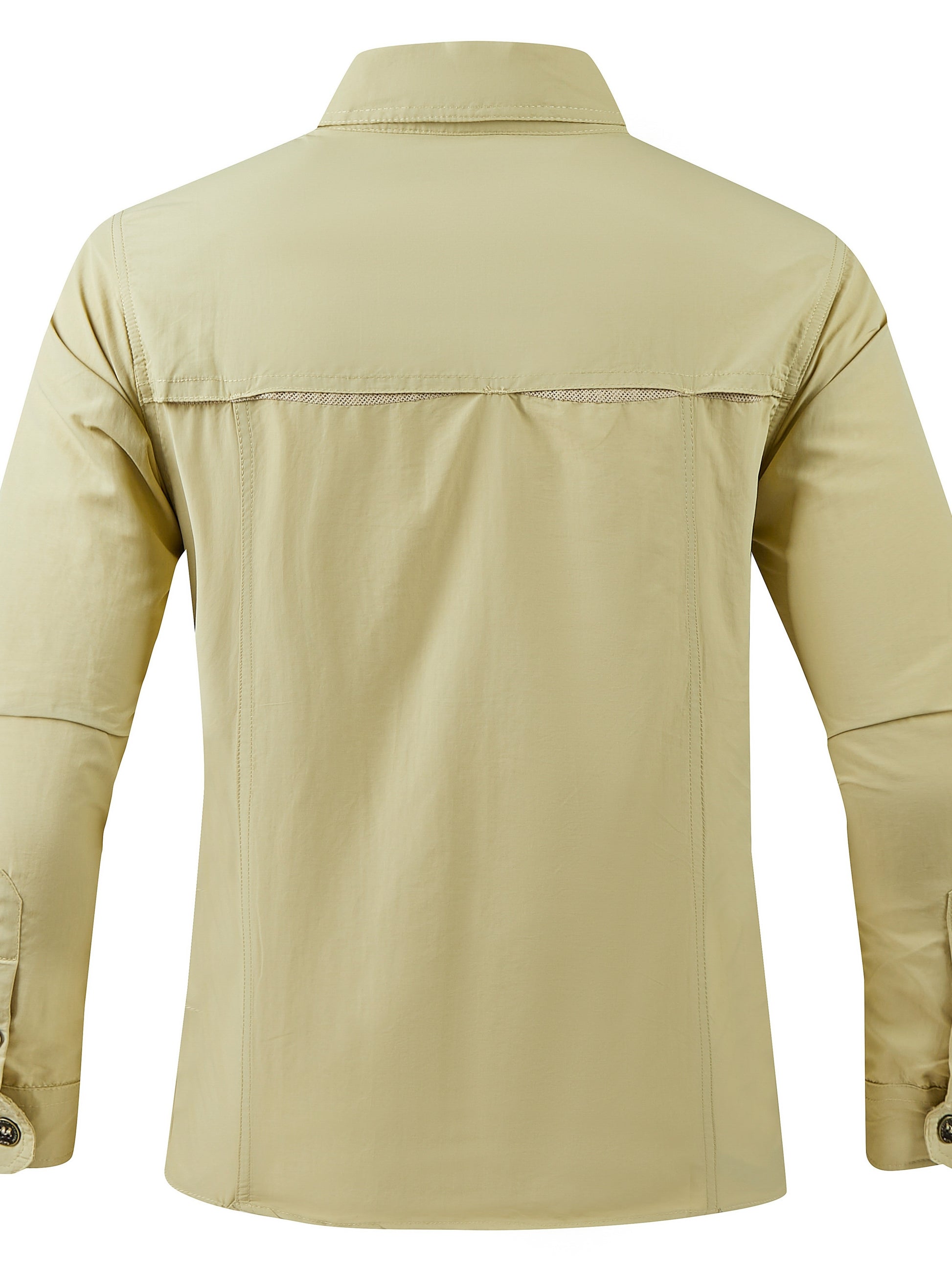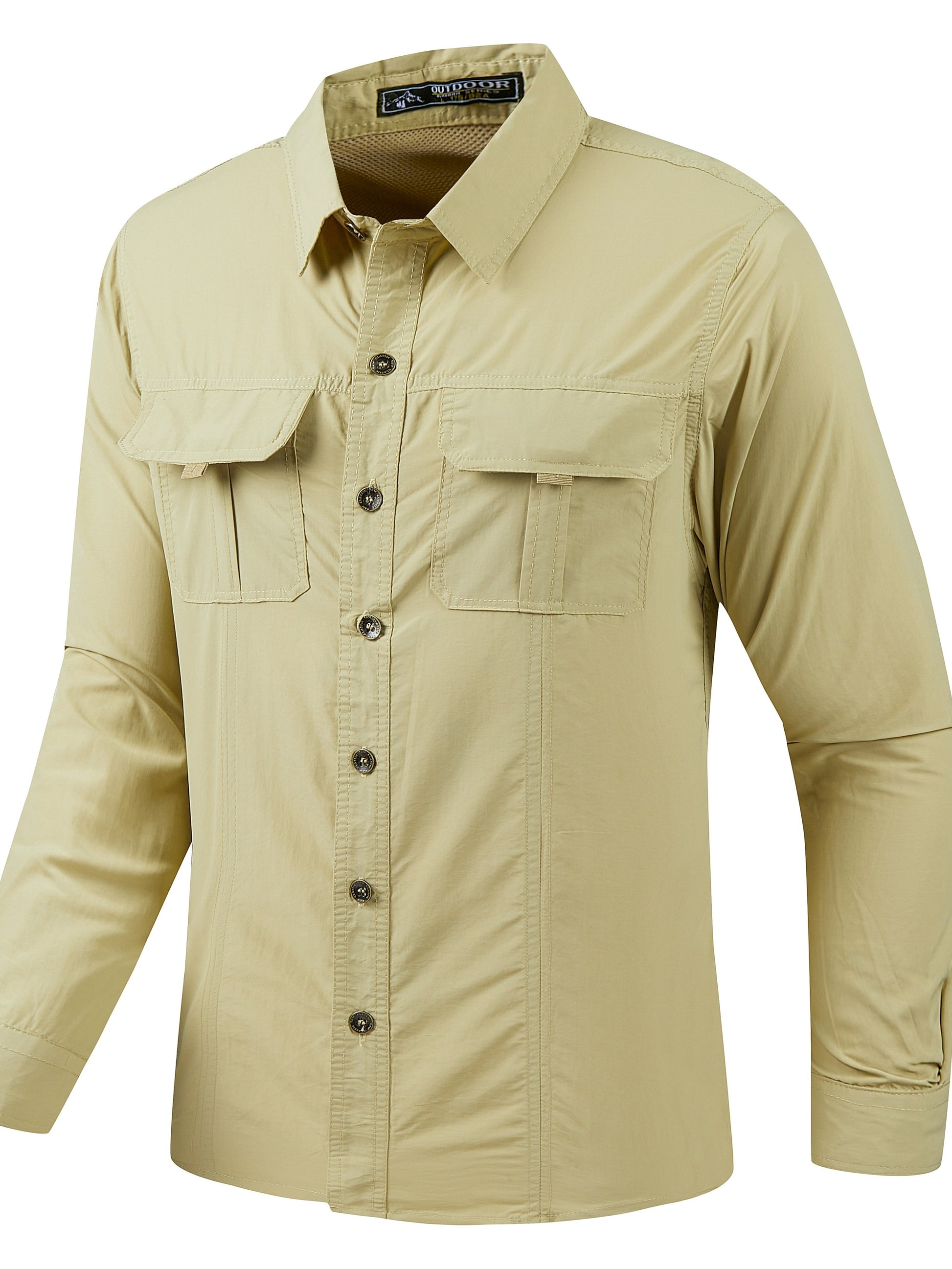 Mens Quick Dry Shirt Men's Quick-Dry Shirt - Beige Button-Up Formal & casual shirt with Button Front Placket, Long Sleeve Non-Sticky Fabric for Office, Outdoor,