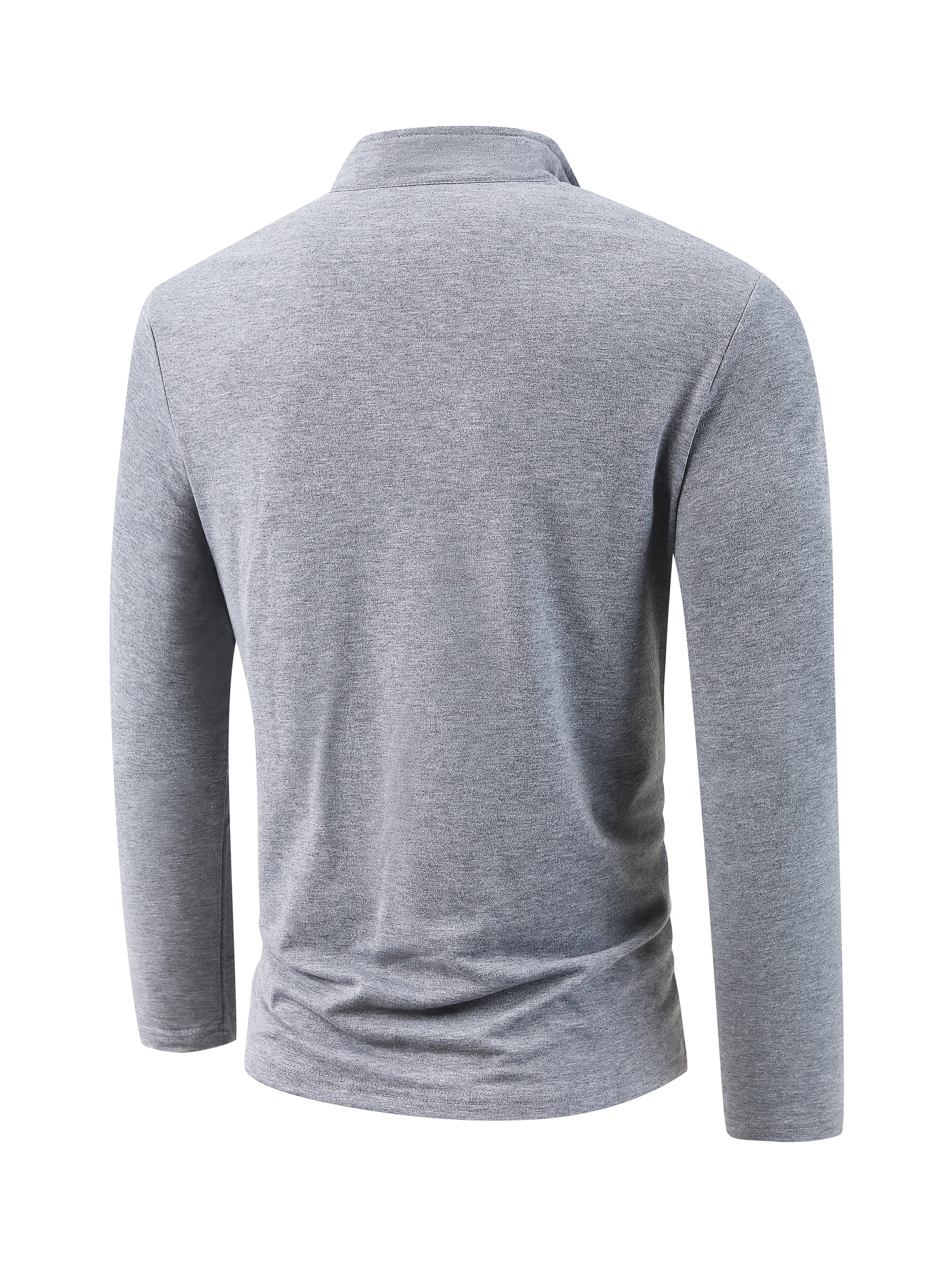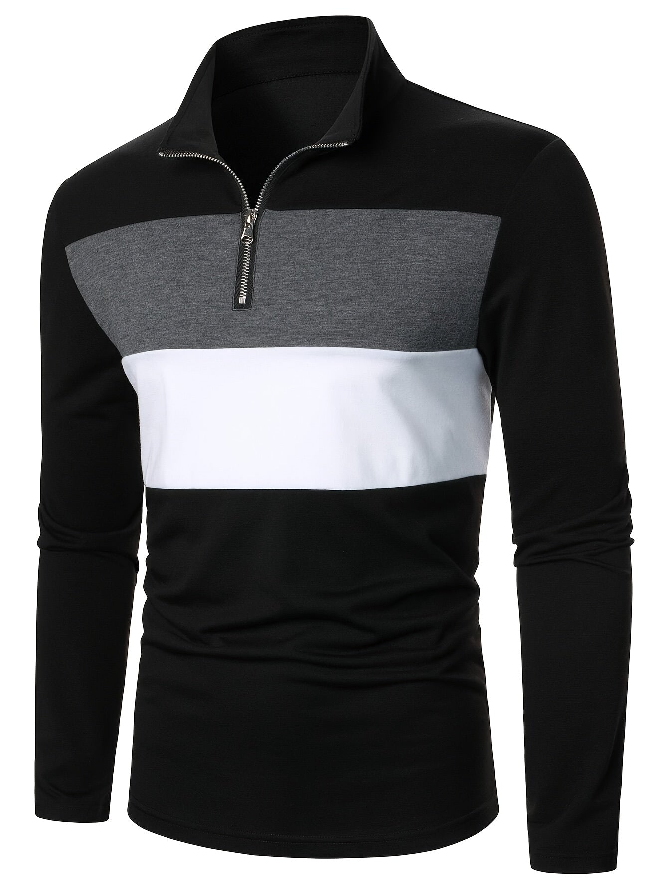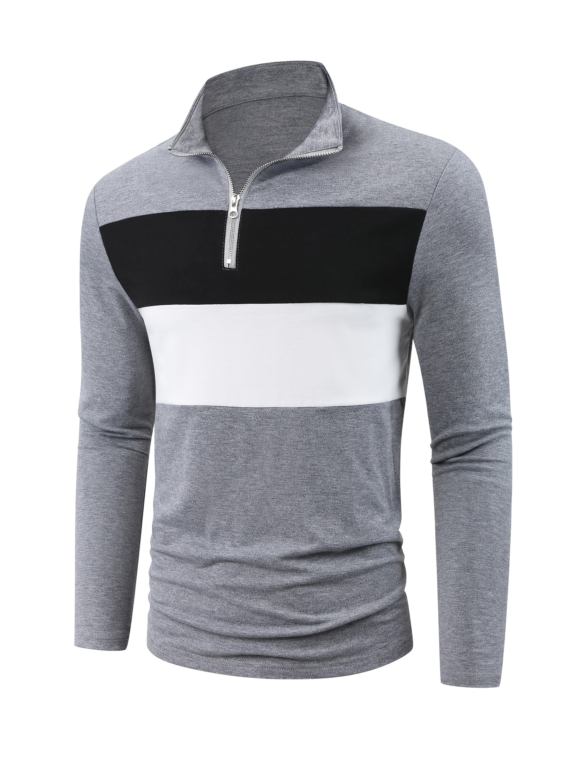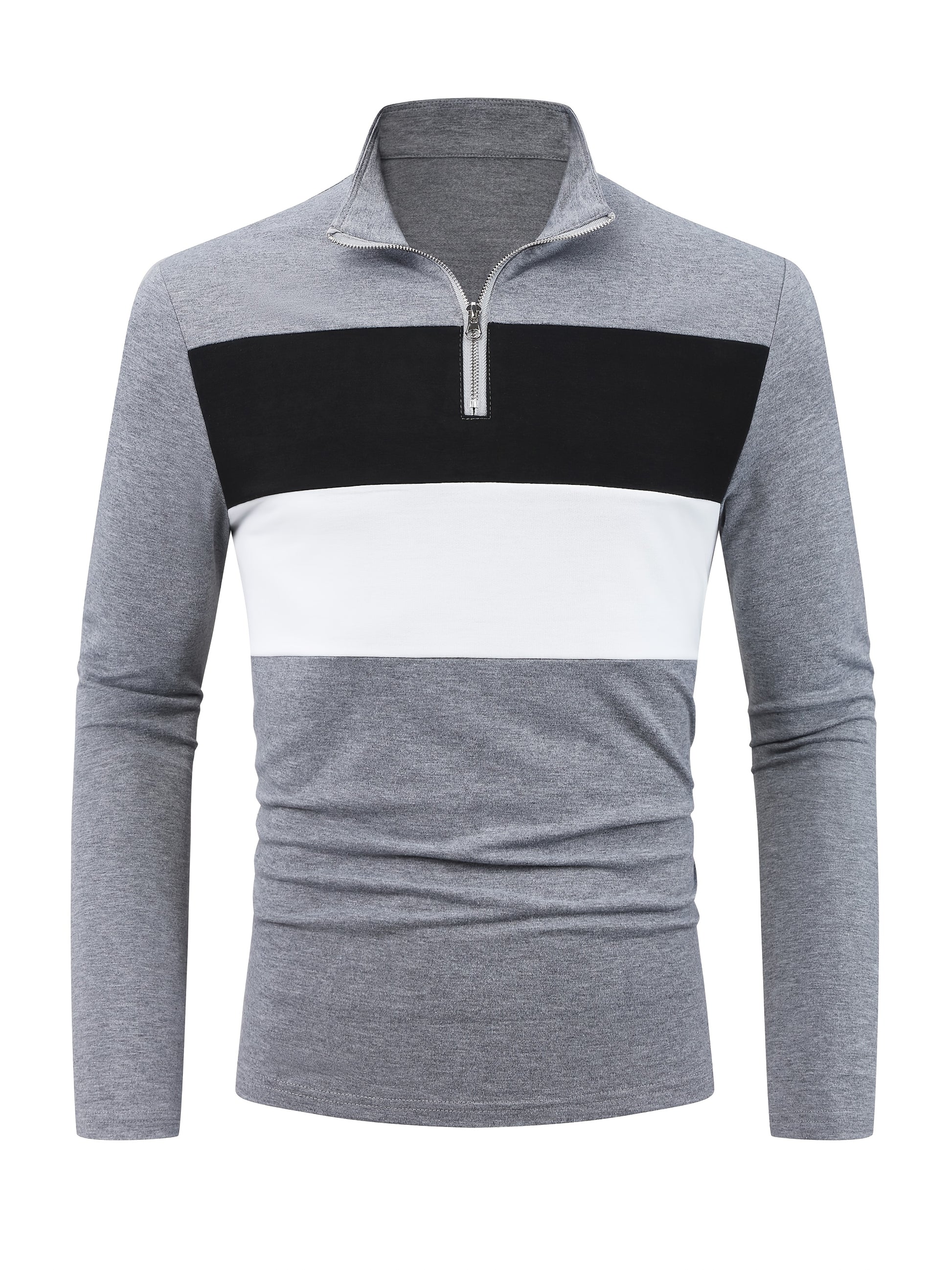 Stretchy T-Shirt Casual Stretchy Polyester Blend Men's Color Block Half-Zip Collared Long Sleeve T-Shirt | Machine Washable, Ideal for Spring & Fall