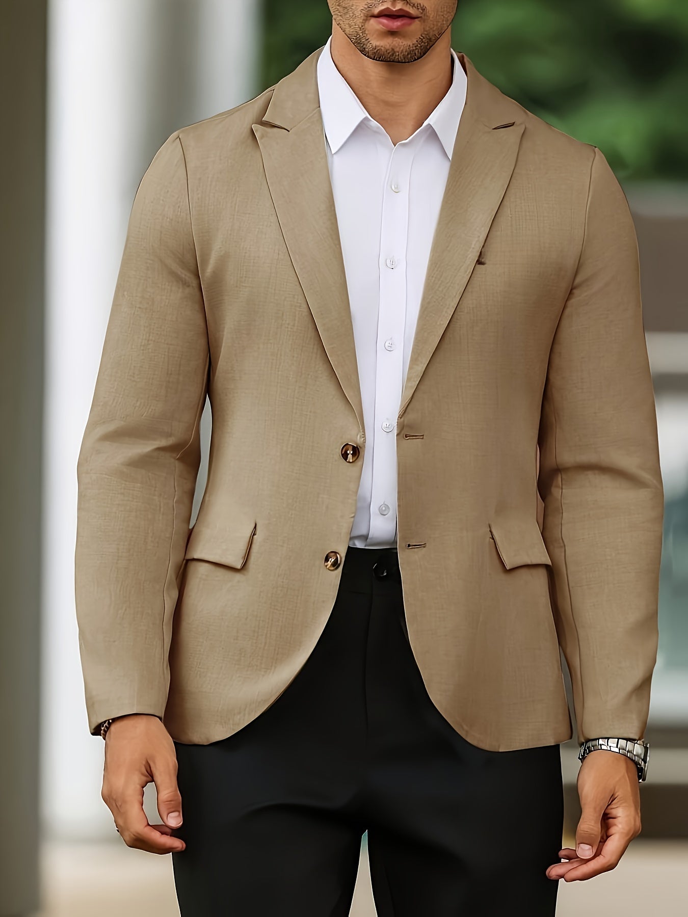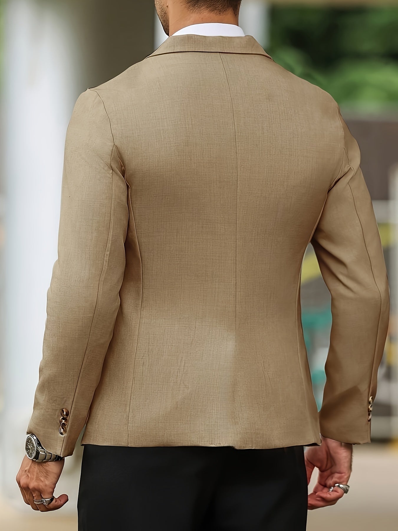 Stylish Casual Blazer Classic Men's Beige Casual Blazer | Long Sleeve Button-Up with Lapel Collar, Regular Fit for Business,