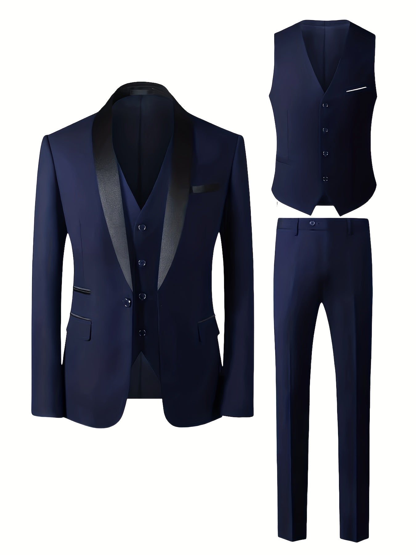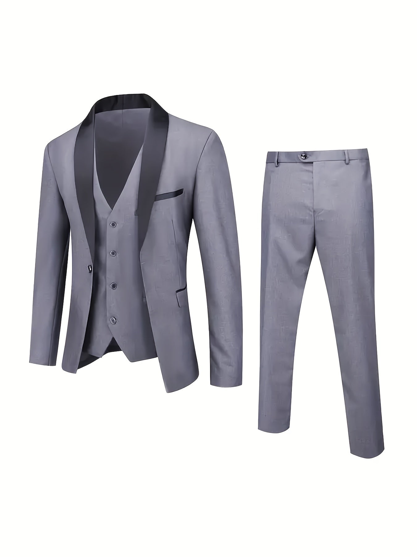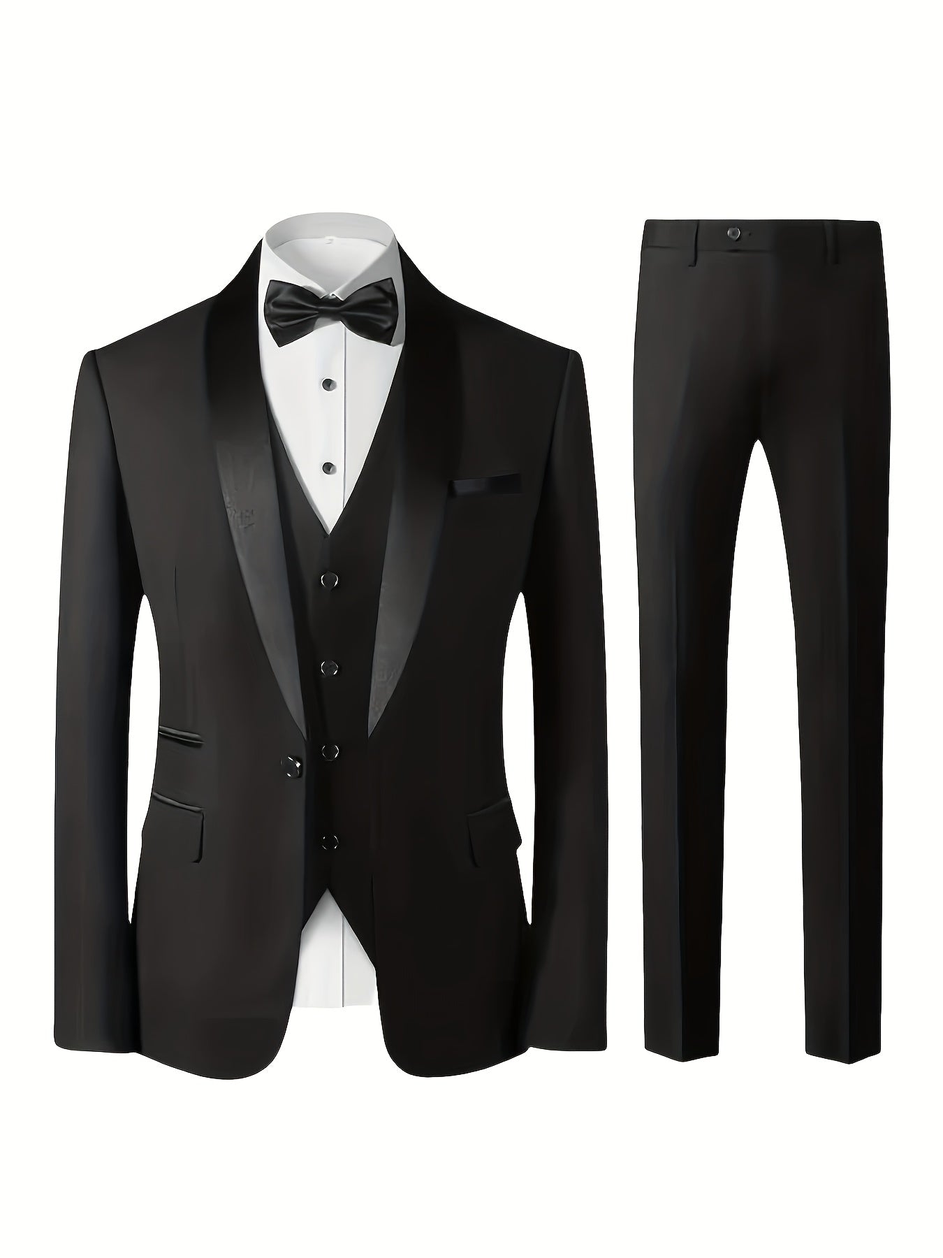 Three-Piece Formal Suit Set Men's Three-Piece Suit Set - Large Size Formal Attire with Notch Lapel, Includes Trousers & Vest for Weddings, Work & Festive Gifts