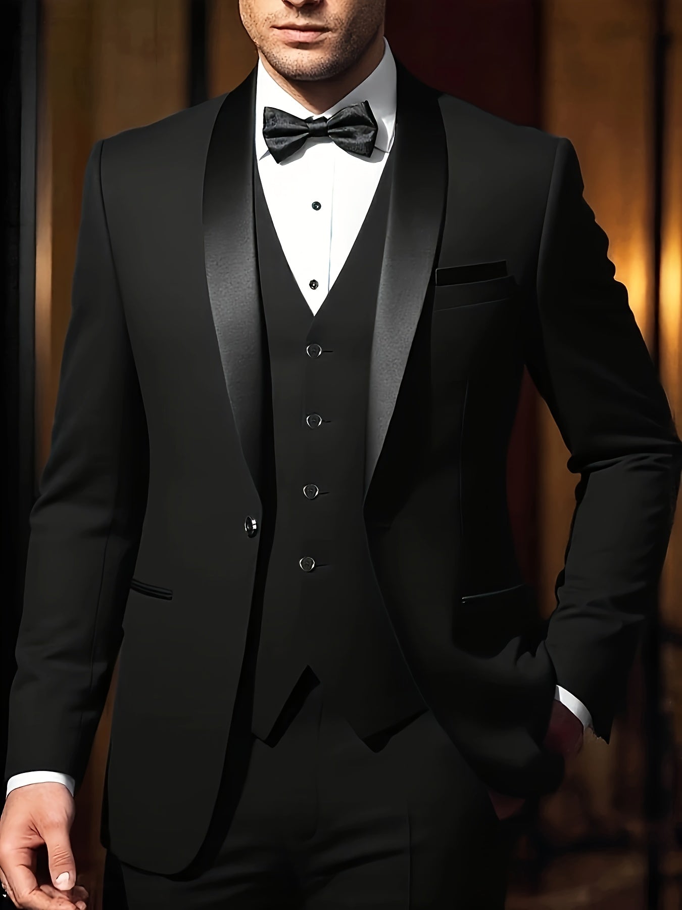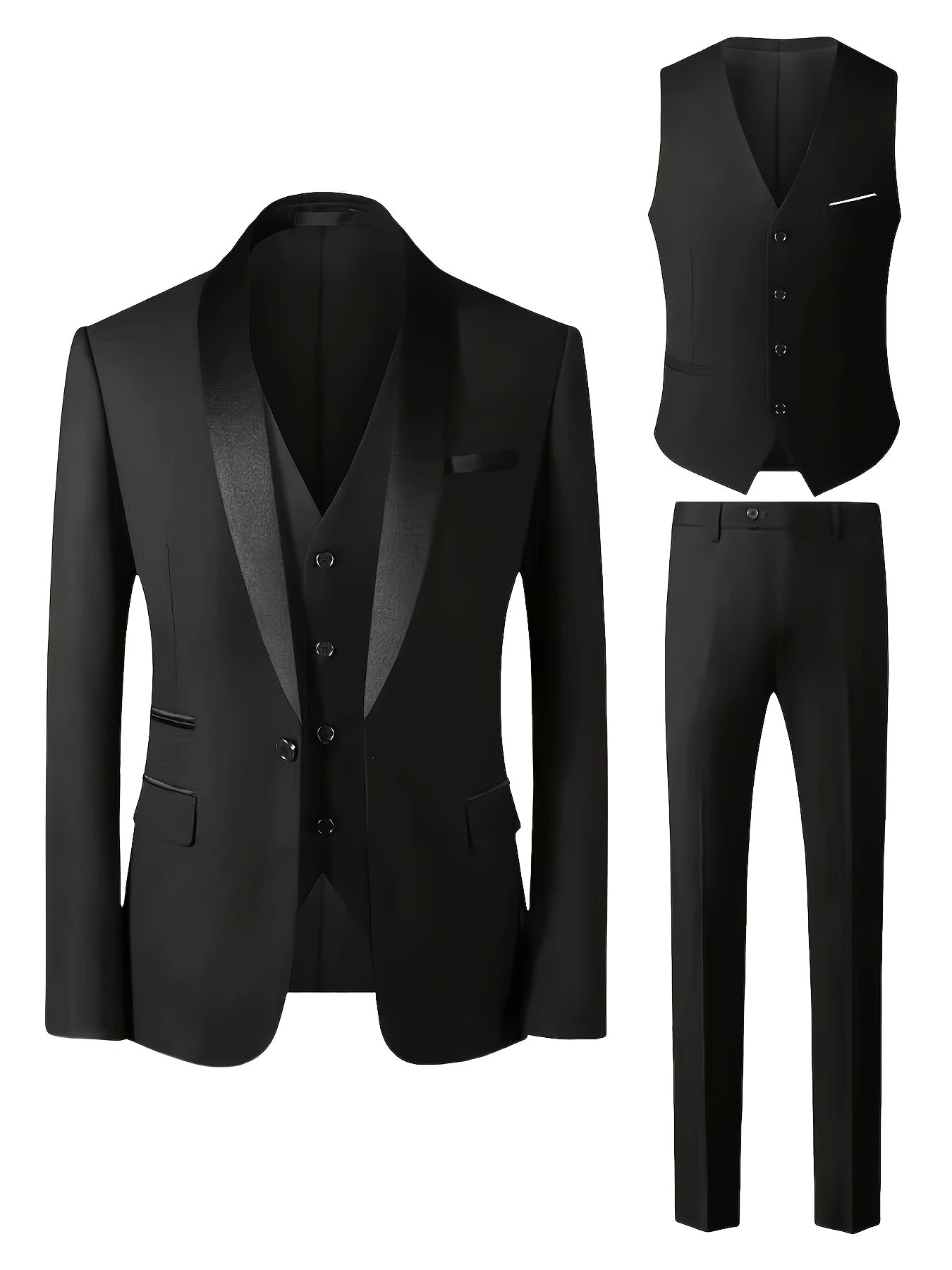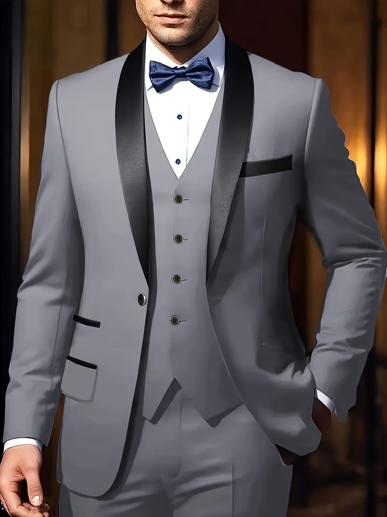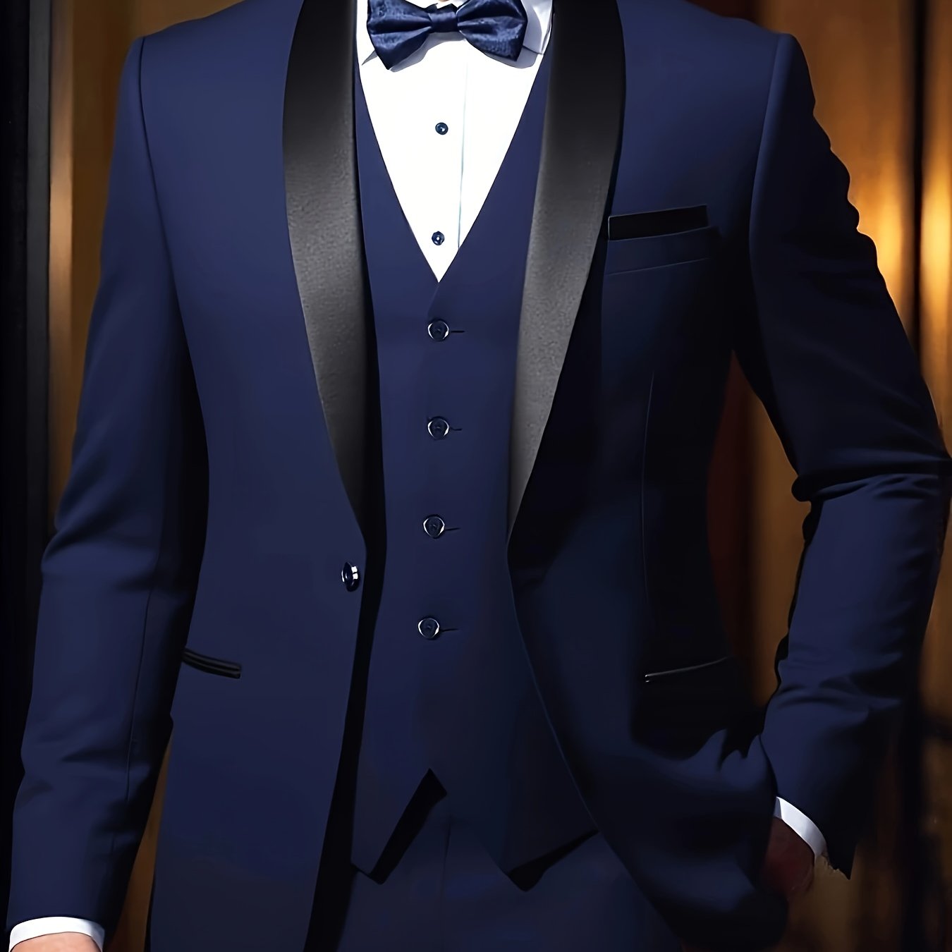 Three-Piece Formal Suit Set Men's Three-Piece Suit Set - Large Size Formal Attire with Notch Lapel, Includes Trousers & Vest for Weddings, Work & Festive Gifts